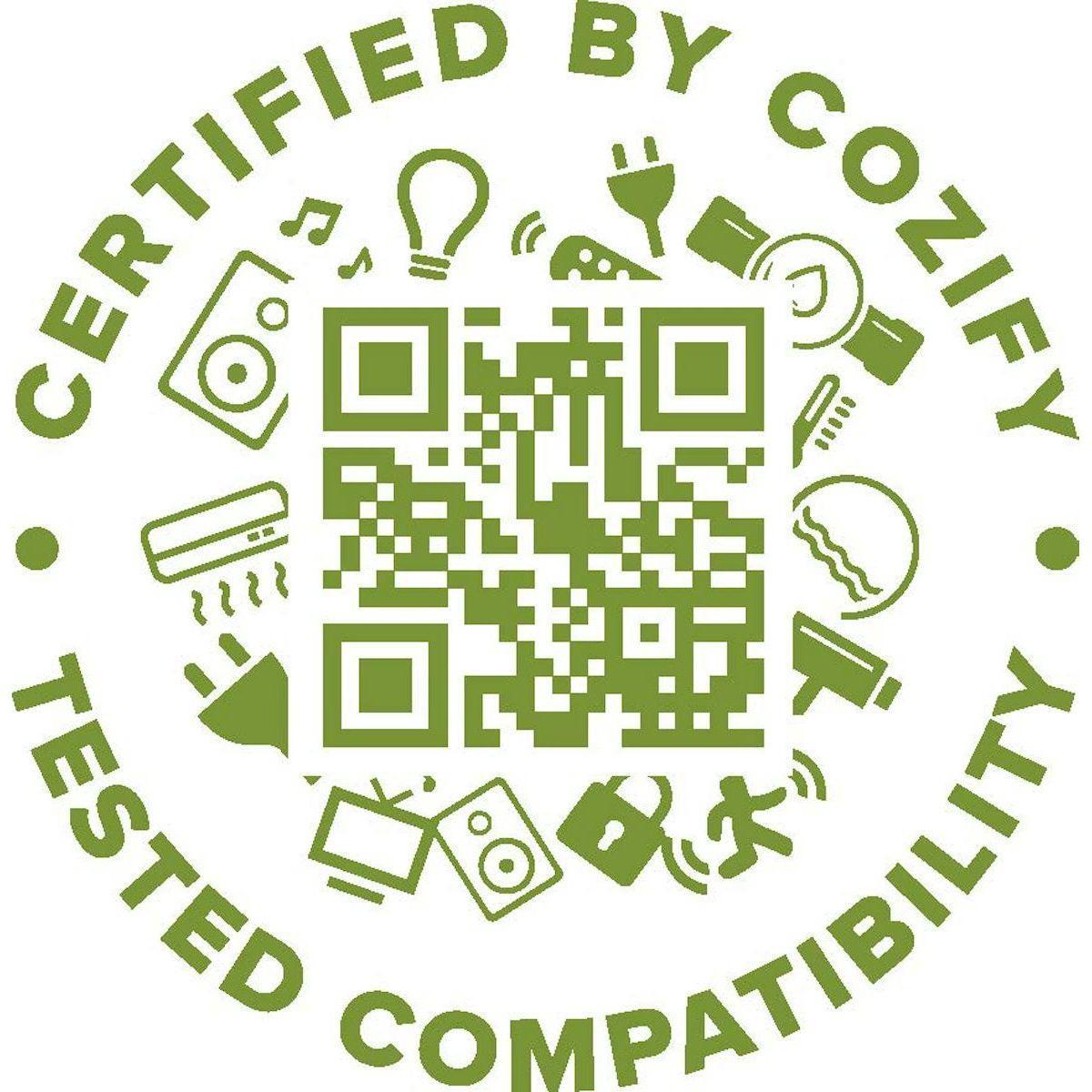 Certified by Cozify -laite: testatusti yhteensopiva ja helppo liittää Cozify ZENiin. Lisätietoja saat skannaamalla QR-koodin tai osoitteesta https://www.cozify.fi/pages/certified-by-cozify.