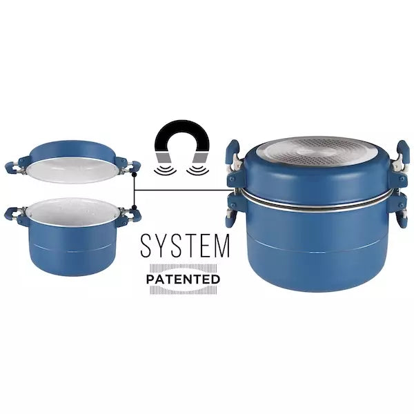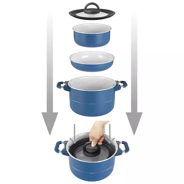 Uusi paranneltu kahvamekanismi ja kiinnitysjärjestelmä mahdollistavat kattilasarjan säilyttämisen entistäkin kompaktimmin. Kahvat toimivat samaan aikaan kahvoina ja lukitusjärjestelmänä, jotta padat ja kattilat eivät kolise toisiinsa.
