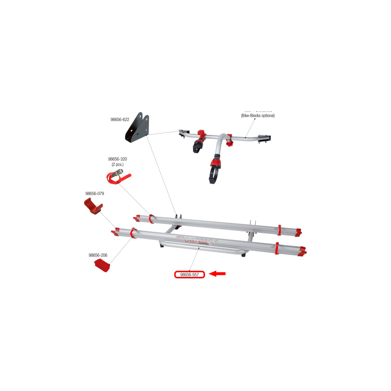 Vaihtoseinätukitanko ja kiinnitystelineet Fiamma Carry Bike Garage Standard -pyörätelineeseen.