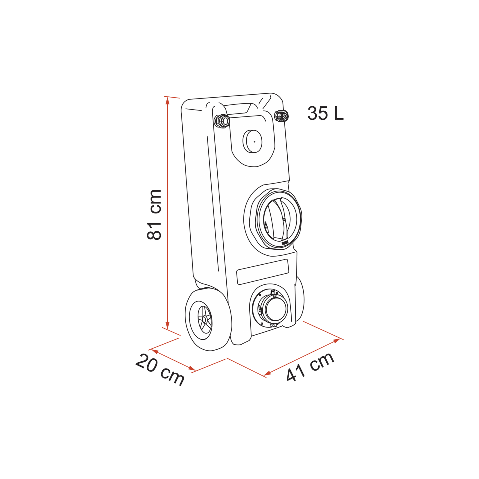 Fiamma Roll-Tank 40W on kannettava jätevesisäiliö, jossa on integroitu täyttöasteen ilmaisin ja ilmareikä helppoa tyhjennystä varten. Säiliö liitetään matkailuautosi polttoainesäiliön venttiiliin tyhjennysletkun kautta, jolloin voit hävittää jäteveden turvallisesti. Hermeettinen tiiviste varmistaa vuotamattoman käytön, ja kestävä polyeteeni (PE) -rakenne takaa kestävyyden. Mukana tuleva 45° tyhjennysliitin helpottaa tyhjennystä.