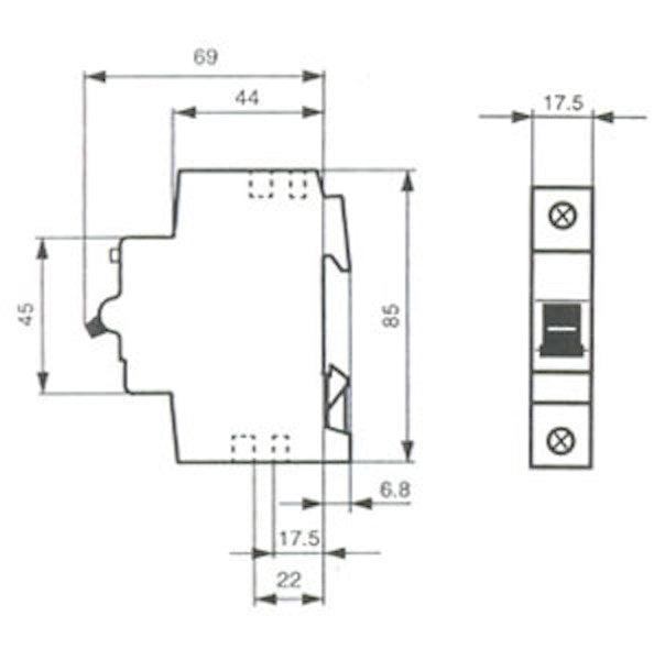 - Mitoitusoikosulkulaukaisukyky Icn EN 60898, 230 V: 6 kA