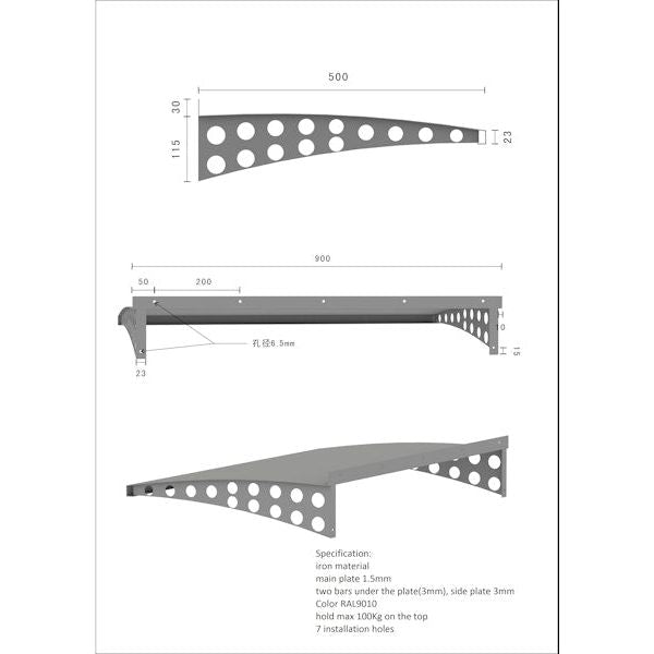 Metallinen katos ilmalämpöpumpun ulkoyksikön suojaamiseksi. esimerkiksi lumelta ja vedeltä.Maksimi kuorma 100 kg. Katoksen materiaalivahvuus 1.5 mm. jonka lisäksi kate on vahvistettu 3 mm metalli tangoilla. Sivupeltien vahvuus 3 mm. Väri RAL9010.