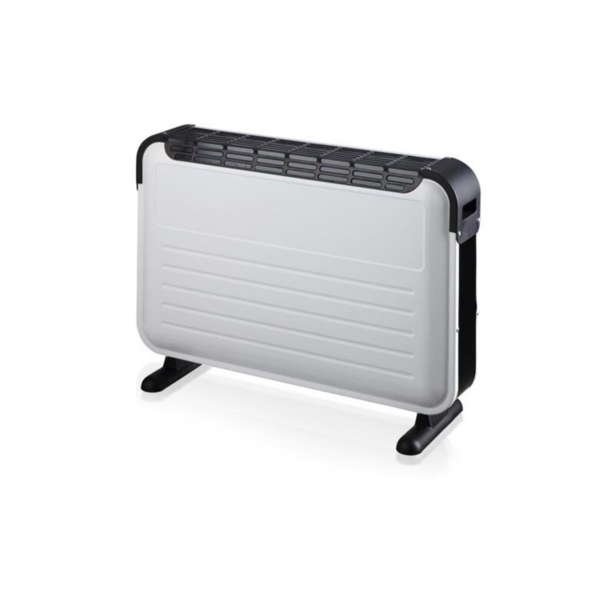 Siirrettävä konvektorilämmitin puhaltimella, joka levittää lämpöä tehokkaammin ja nopeammin.