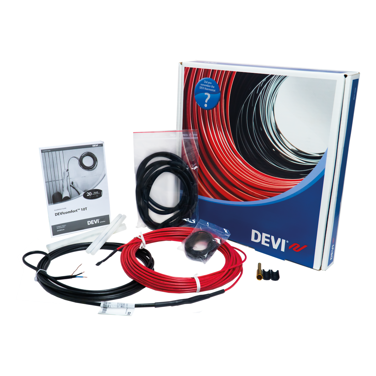 Lämmityskaapeli toimitetaan määrämittaisena kertakäyttöisellä kelalla, joka helpottaa asennustyötä. Kaapeli on merkitty metrimerkinnöin. DEVIcomfort™ saneerauskaapelin teho on 10 W/m ja halkaisija vain 4,0 mm. Asennusväli voi vaihdella 12–6 cm, jolloin neliötehoksi muodostuu 80–150 W. Yleensä tehona käytetään 100 W/m².