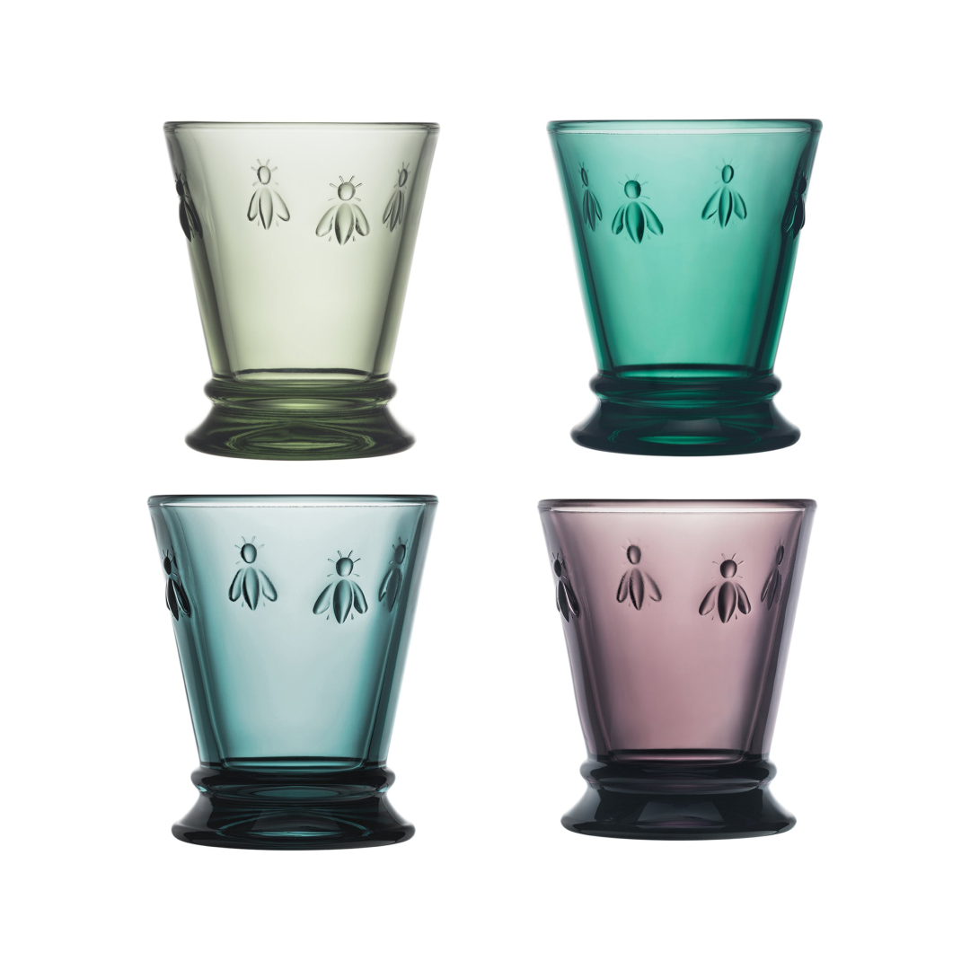 Tyylikkään yksinkertaiset ja modernit mehiläiskohokuvioidut juomalasit tuovat pöytääsi ranskalaisen maalaisilmeen. Lasit on valmistettu puristetusta lasista. Ne ovat täydelliset kädessä ja sopivan raskaat pysyäkseen hyvin pystyssä pöydässä. Sopivat erinomaisesti niin arki- kuin juhlapöytään.