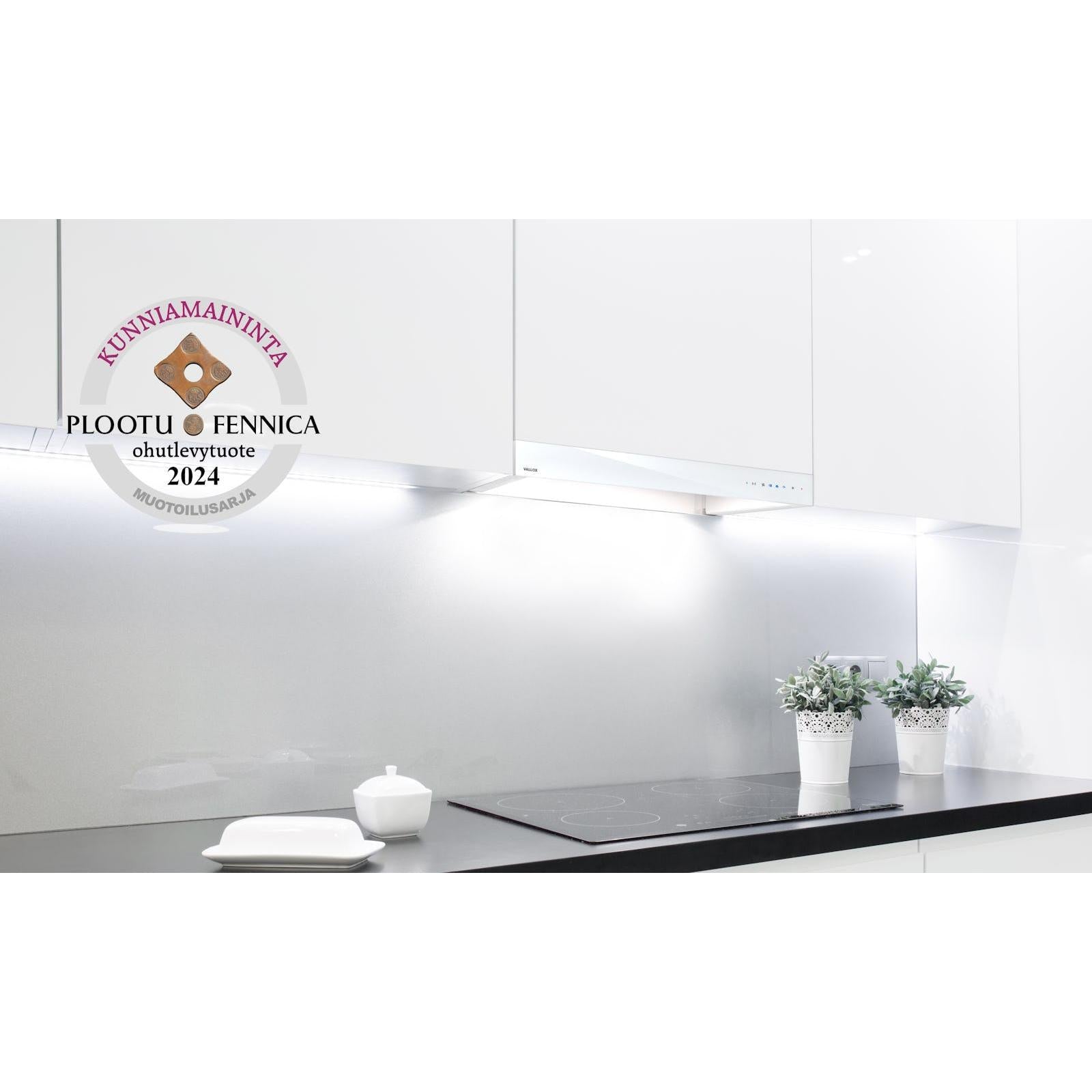 Kupu sopii huippuimureiden ja Vallox-ilmanvaihtokoneiden ohjaukseen. Kuvun etupaneelin saa mustana tai valkoisena, joten se on helppo sulauttaa osaksi keittiötä. Höyrynkeräysosan tukeva rakenne ja sulava liikkuminen sisään ja ulos on osa sen laadukasta käyttömukavuutta. Kuvun ohjaus tapahtuu etupaneelin kosketuspainikkeiden avulla.