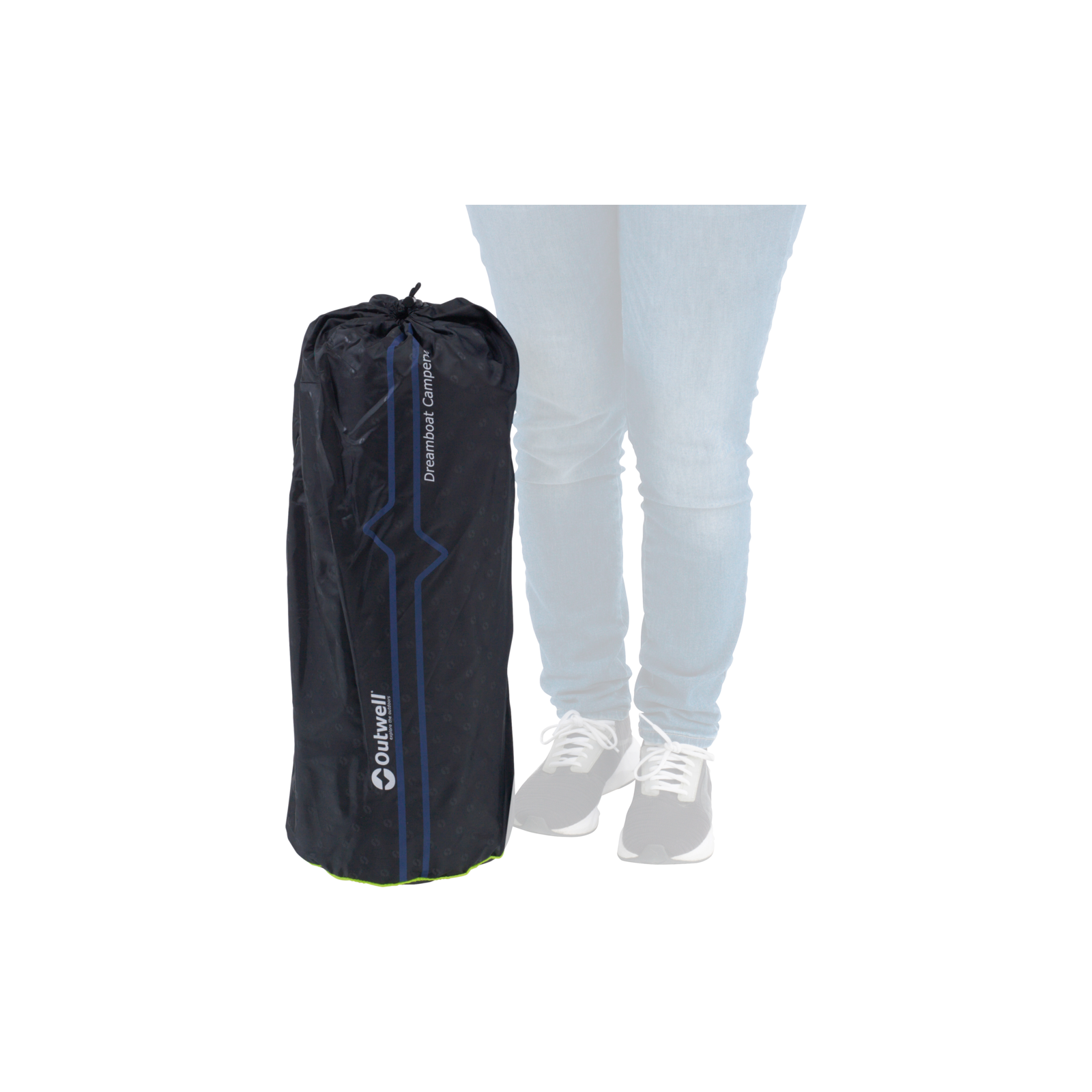 Dreamboat Campervan 3D -matot tarjoavat täydellisen nukkumismukavuuden matkailuautoissa ja erittäin kompaktin pakkauskoon. Se on saatavilla linja-autojen 150 cm leveään lavaan, jossa on kolmen istuttava takapenkki, tai muunnettuihin matkailuautoihin, joissa on sivukalusterivi ja 114 cm leveä kahden istuttava takapenkki. Maton muoto on täydellisesti mukautettu ja varmistaa siten maksimaalisen makuuleveyden ja -pituuden. Erinomainen itsestään täyttyvä 7,5 cm paksu vaahtomuovi ja mukava joustava päällinen takaavat erinomaisen makuumukavuuden. Voit itse määrittää maton kovuuden. Täytä matto pumpulla tai suulla, aseta se haluttuun asentoon ja päästä varovasti ilmaa ulos venttiilin kautta, kunnes uppoat hieman ja haluttu kiinteysaste on saavutettu.