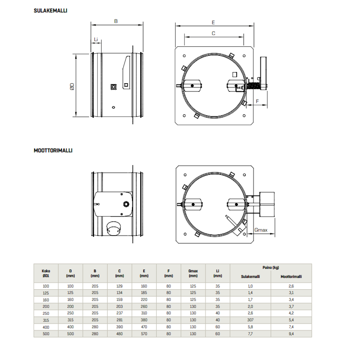 - paloluokka: E 120 / E 60 S pystykanavaan asennettuna ja E 90 / E 60 S vaakakanavassa