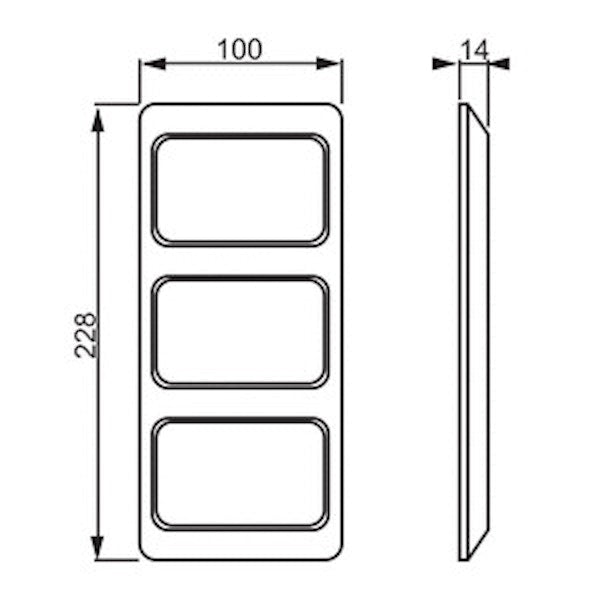 Jussi uppoasennuspeitelevy 100 mm kolmelle kaksoispistorasialle.