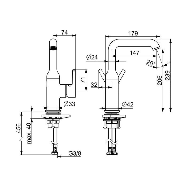 - vivun/kahvan tyyppi: yksi käyttövipu/kahva, puikkomainen vipu, kuuma/kylmä -symbolit