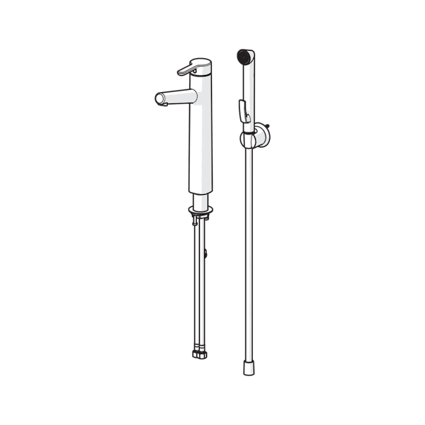 - suihkun osat: suihkupidike, suihkuletku (1600 mm)