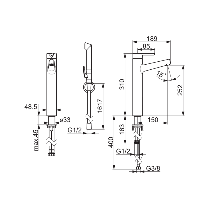 - käsisuihkun tyyppi: Bidetta-käsisuihku