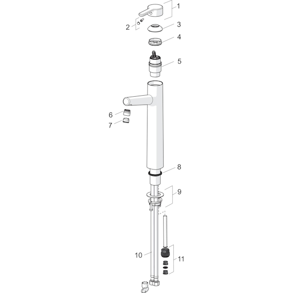 Oras Inspera 3002F on korkea pesuallashana, jossa on kiinteä juoksuputki, Bidetta-käsisuihku ja joustavat kytkentäputket.