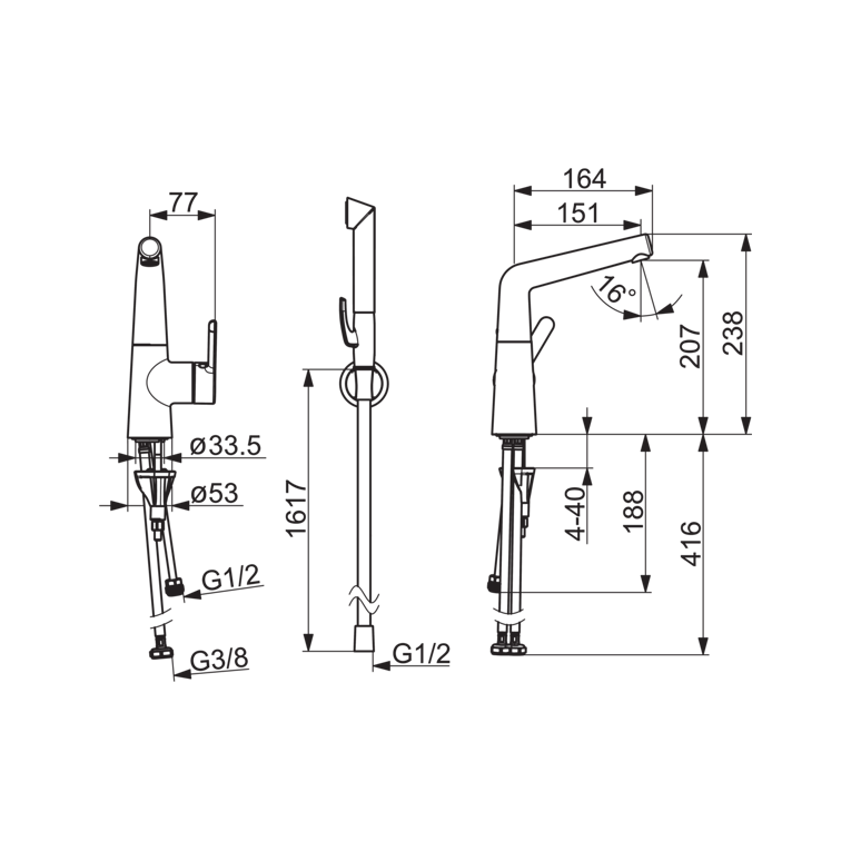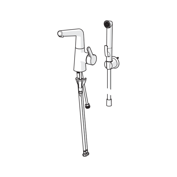 - suihkun osat: suihkupidike, suihkuletku (1600 mm)