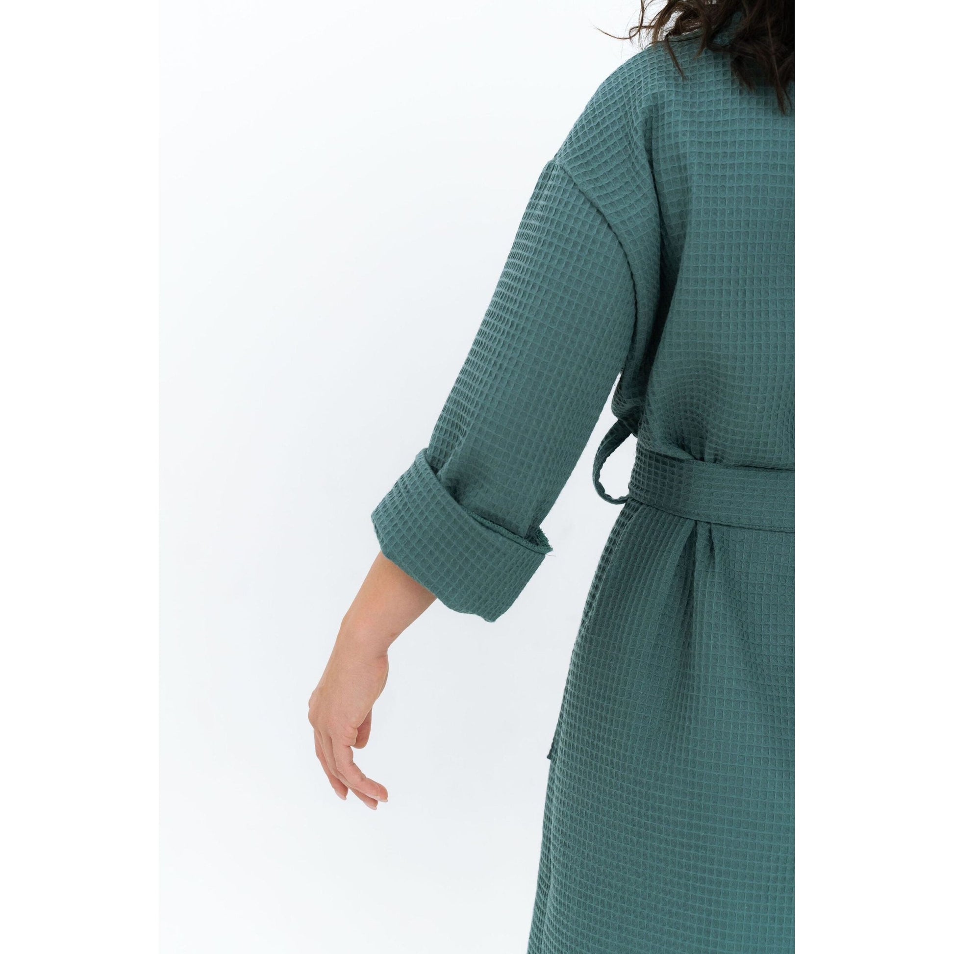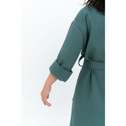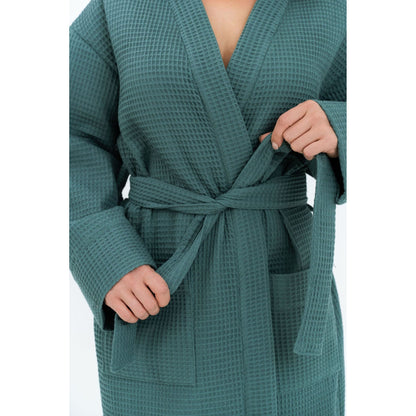Naisten vohvelikuvioinen aamutakki. Klassinen malli sivutaskuilla ja vyöllä. Pehmeä, mukava, kevyt ja miellyttävä.