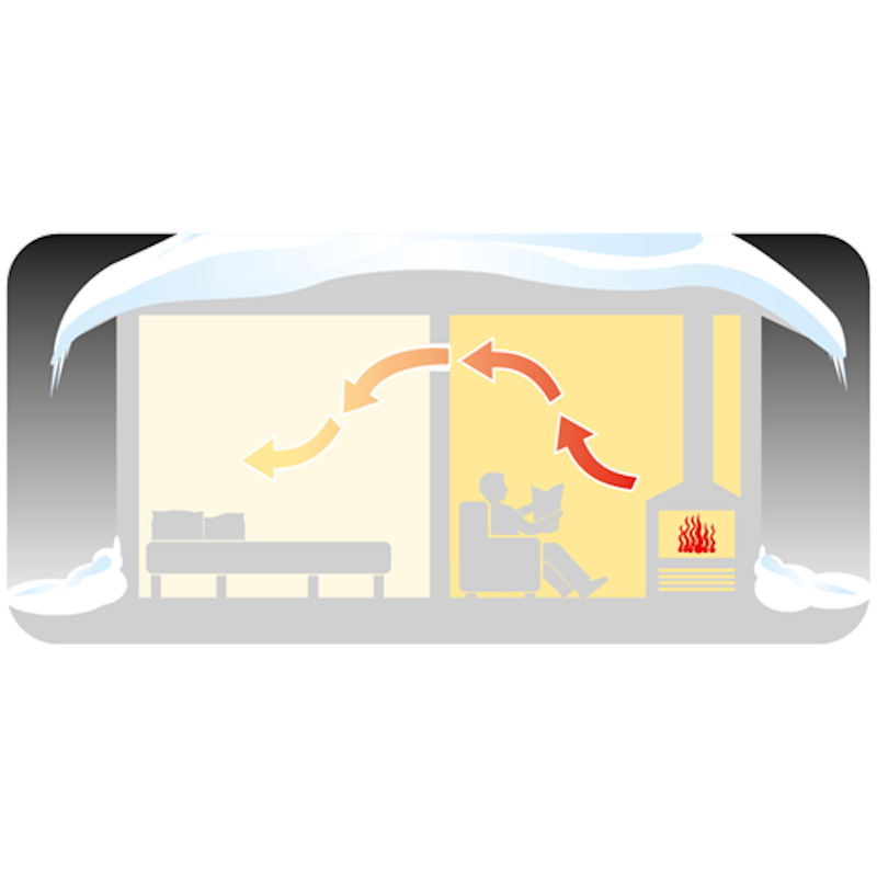 Lähes äänetön, 8-nopeuksinen siirtoilmapuhallin sisäseinään. Asenna Intellivent Celsius huoneeseen, jossa on takka, niin voit hyödyntää sen lämpöä viereisessä huoneessa. Intellivent Celsiuksessa on useita ominaisuuksia, esimerkiksi elektroninen termostaatti, tehonsäädin ja taukotoiminto.