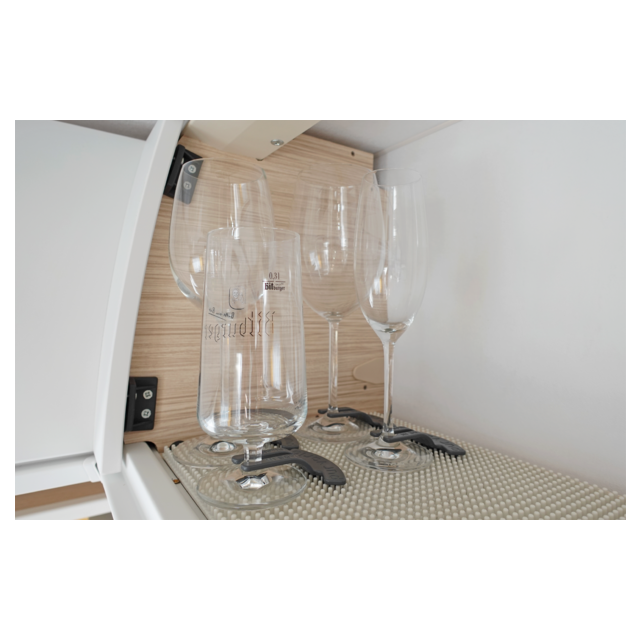 Jalallisia laseja voidaan nyt kuljettaa pystyasennossa, kallistettuna ja särkymättömästi matkan aikana, mikä säästää tilaa. Kaikille jalallisille laseille, kuten viini- tai samppanjalaseille,