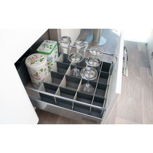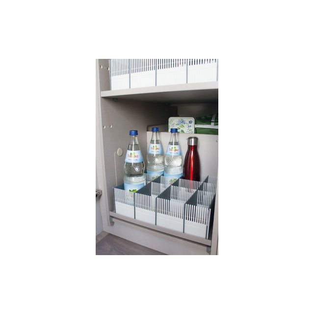 Nämä joustavat muoviset säilytysliuskat tarjoavat optimaalisen erottelusuojan erilaisille tavaroille ja vakauttavat ne särkymättömästi ja liukumattomaksi. Kapea 5 mm:n ruudukko mahdollistaa erilaisten tavaroiden optimaalisen ja särkymättömän vakauttamisen matkoilla. Joustava, portaattomasti laajennettava ja helppokäyttöinen – liitä vain yhteen ja leikkaa oikeaan kokoon. Rei'itys 3 mm:n välein, pestävä.