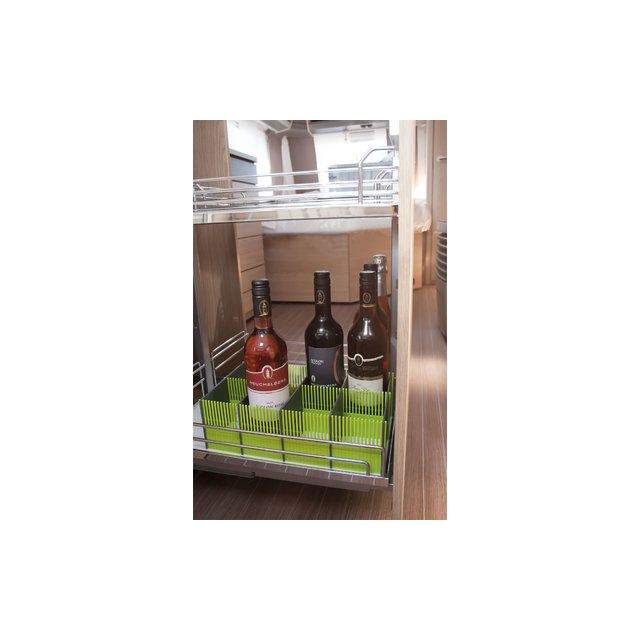 Nämä joustavat muoviset säilytysliuskat tarjoavat optimaalisen erottelusuojan erilaisille tavaroille ja vakauttavat ne särkymättömästi ja liukumattomaksi. Kapea 5 mm:n ruudukko mahdollistaa erilaisten tavaroiden optimaalisen ja särkymättömän vakauttamisen matkoilla. Joustava, portaattomasti laajennettava ja helppokäyttöinen – liitä vain yhteen ja leikkaa oikeaan kokoon. Rei'itys 3 mm:n välein, pestävä.