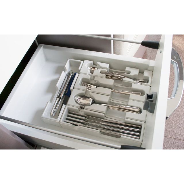 Modulaarisen järjestelmän ansiosta yksittäiset lokerot voidaan mukauttaa monenlaisiin laatikoihin tarpeiden ja leveyden mukaan. Älykäs aterinlokero hyödyntää käytettävissä olevan tilan parhaalla mahdollisella tavalla. Ruokailuvälineet voidaan järjestää siististi. Käytännöllinen pinoaminen tekee siitä entistäkin kätevämmän kapeissa tai pienemmissä laatikoissa. Se sopii erityisesti pieniin ajoneuvoihin, kuten pakettiautoihin. Vaakasuora säilytys suojaa aterimia, erityisesti veitsenteriä, vaurioilta.