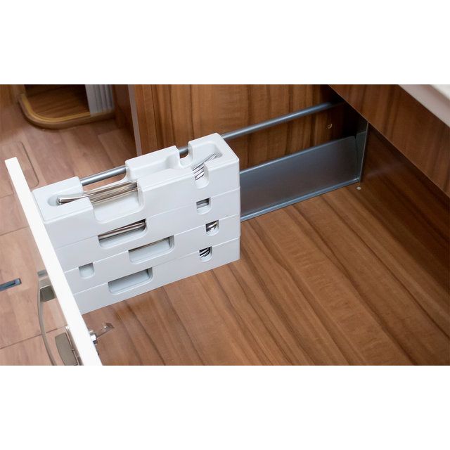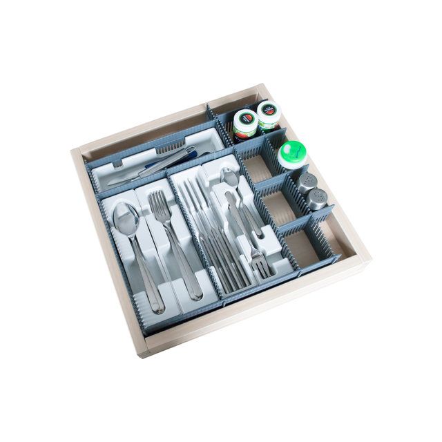 Modulaarisen järjestelmän ansiosta yksittäiset lokerot voidaan mukauttaa monenlaisiin laatikoihin tarpeiden ja leveyden mukaan. Älykäs aterinlokero hyödyntää käytettävissä olevan tilan parhaalla mahdollisella tavalla. Ruokailuvälineet voidaan järjestää siististi. Käytännöllinen pinoaminen tekee siitä entistäkin kätevämmän kapeissa tai pienemmissä laatikoissa. Se sopii erityisesti pieniin ajoneuvoihin, kuten pakettiautoihin. Vaakasuora säilytys suojaa aterimia, erityisesti veitsenteriä, vaurioilta.