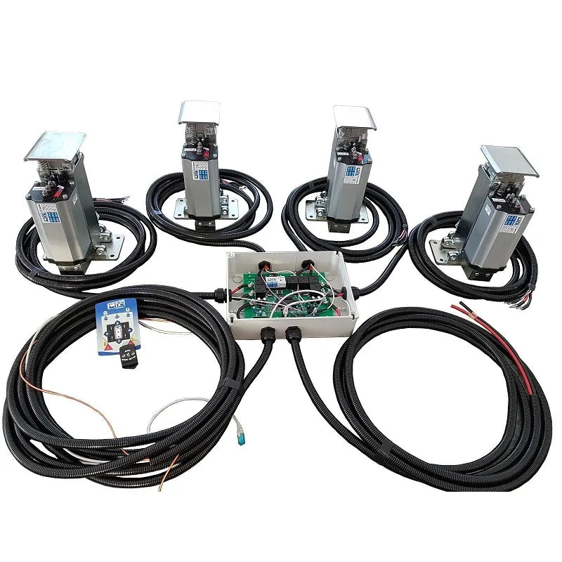 Neljän nostojalan lisäksi sarja sisältää kaikki tarvittavat kiinnityssovittimet ja ruuvisarjat täysin automaattiseen korkeudensäätöön.