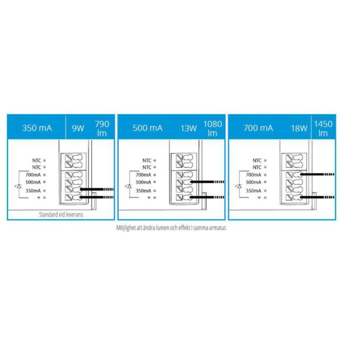 Kestävä ja energiatehokas seinäasenteinen valaisin niin sisäänkäyntien kuin erilaisten teollisuushallien lähialueiden valaistukseen. Valontuoton (tehon) valinta käyttökohteen tarpeen mukaan, tehdasasetus 9W (790 lm). Suositeltava asennuskorkeus 1,8–4 metriä. Runko alumiinivalua, kupu polykarbonaattia. Lisätarvikkeena saatavana numerokyltti, snro 4212964.