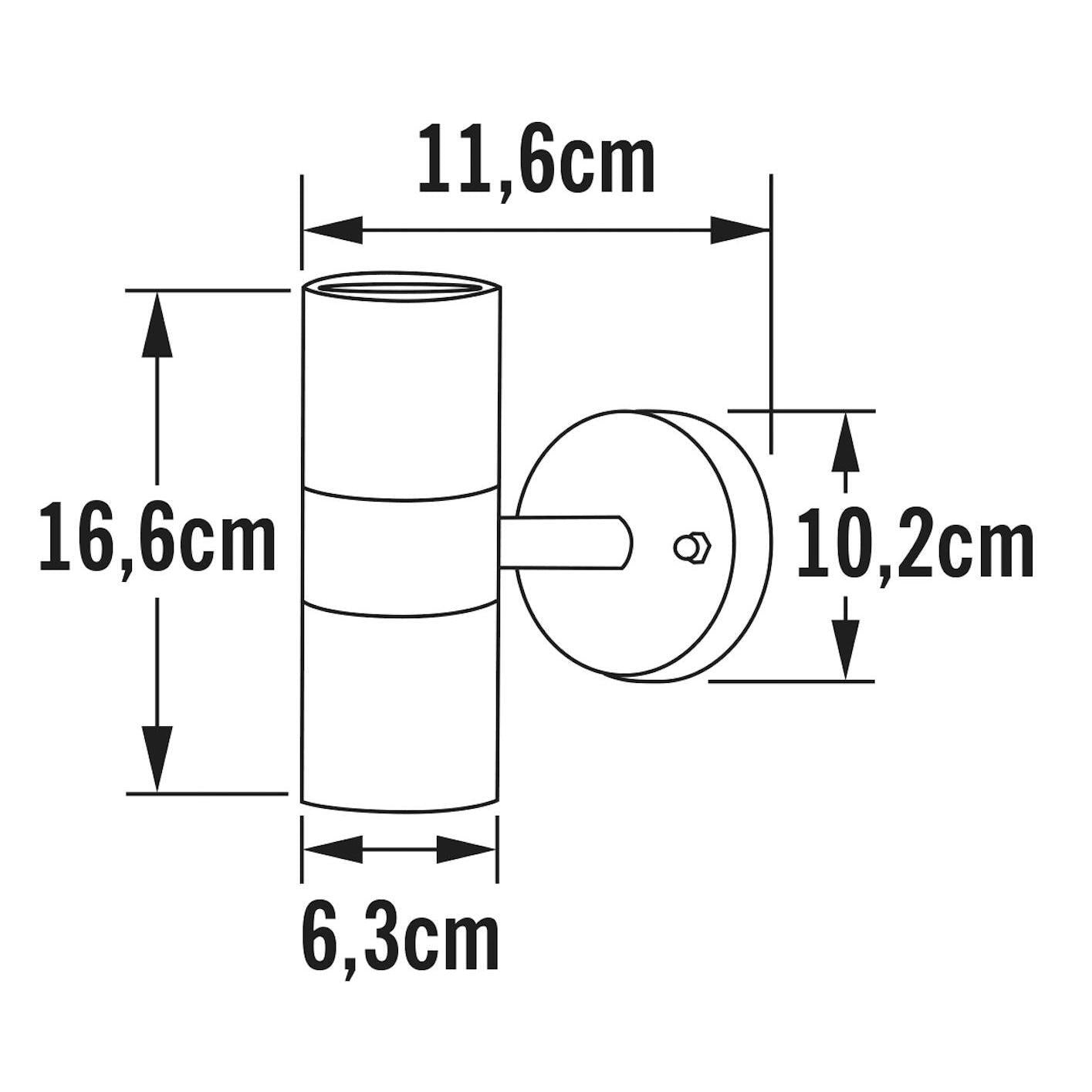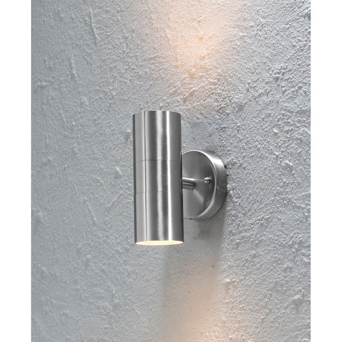 ModenaSeinävalaisin, ruostumaton teräs, korkeus 17 cm, ylös-alasvalo, IP44, 2xGU10 valonlähde ei sis. pakettiin.Tuoteperheessä on monipuolisesti vaihtoehtoja kotien ja kiinteistöjen pihapiirien näyttävään ja käytännönmukaiseen valaistukseen. Seinävalaisimia on sekä alaspäin, että ylös-alaspäin valaisevina, ja on myös suunnattavia malleja. Pollarivalaisimiakin löytyy, perinteisistä malleista moderneihin. Rungot, mallikohtaisesti, ovat joko maalattua alumiinia tai galvanoitua terästä tai rosteria. Lampunkannat pääsääntöisesti GU10, valonlähteet on tilattava erikseen.