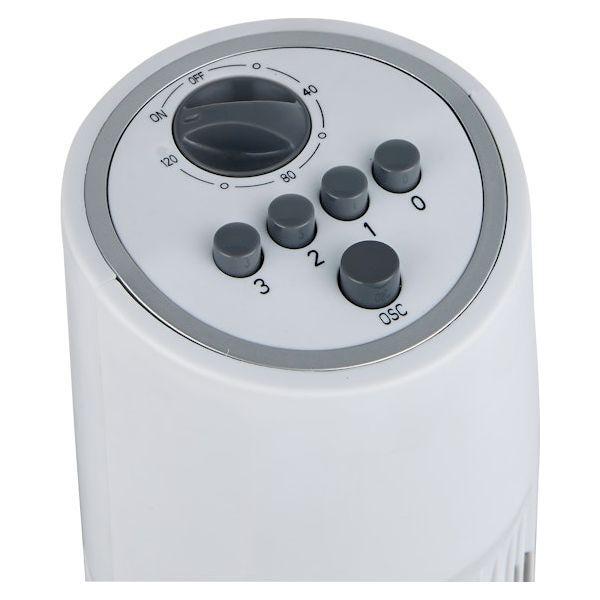 Mattavalkoinen Opal tornituuletin on varustettu ajastettavalla mekaanisella säädöllä.