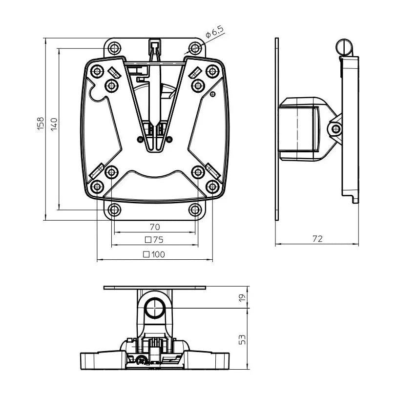 - Helppo näytön kiinnitys yhdellä kädellä toimivan QuickRelease-kiinnityksen ansiosta, joka sopii 75x75mm ja 100x100mm asennusstandardeihin