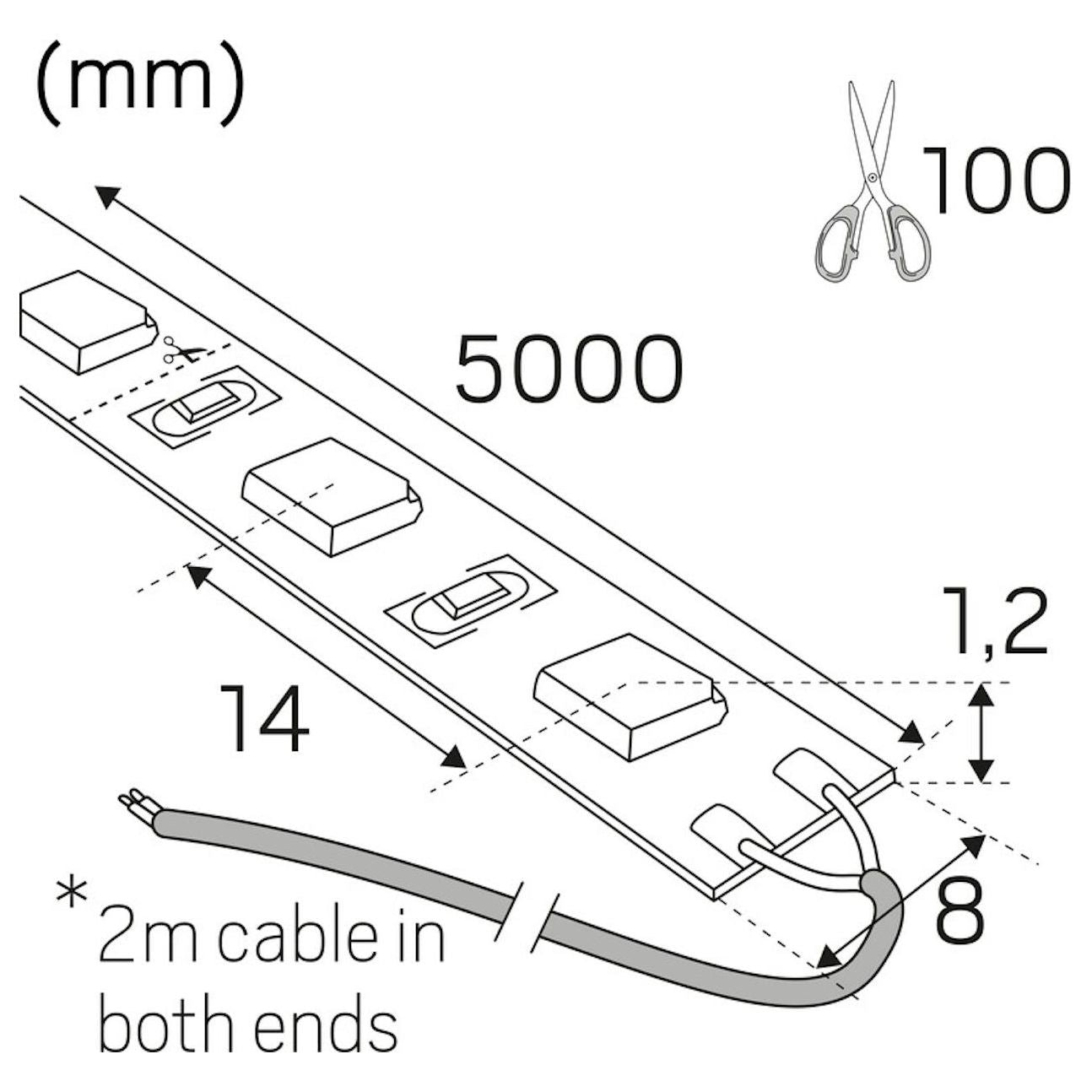 LEDstrip 24V IP20 Lowlum 4000K 5m, 120°, 4,4 W/m, 540 lm/m, Ra>90, käyttöikä L70 75 000h, toimitetaan 5 metrin pituisena