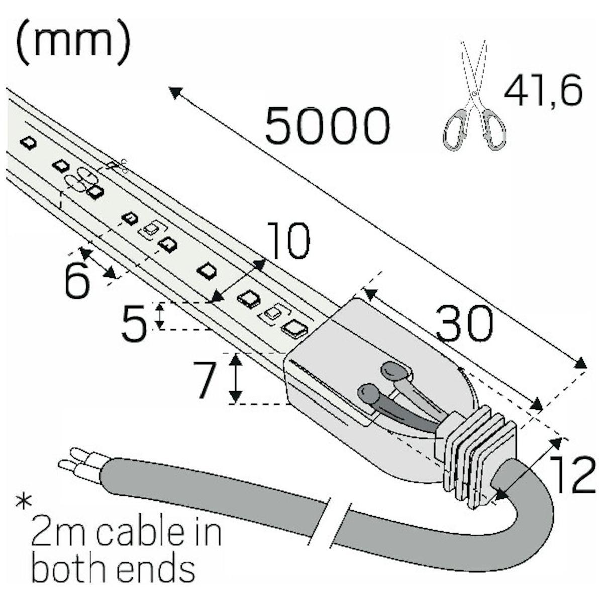 Toimitetaan vakiona viiden metrin rullissa, mukana kahden metrin liitosjohto molemmissa päissä, yksi pikaliitäntä ja kaksipuolinen teippi helppoa asennusta varten. Viiden metrin pakkaus sisältää tuotteet, joilla voidaan luoda kolme eri pituutta tarpeiden mukaisesti.