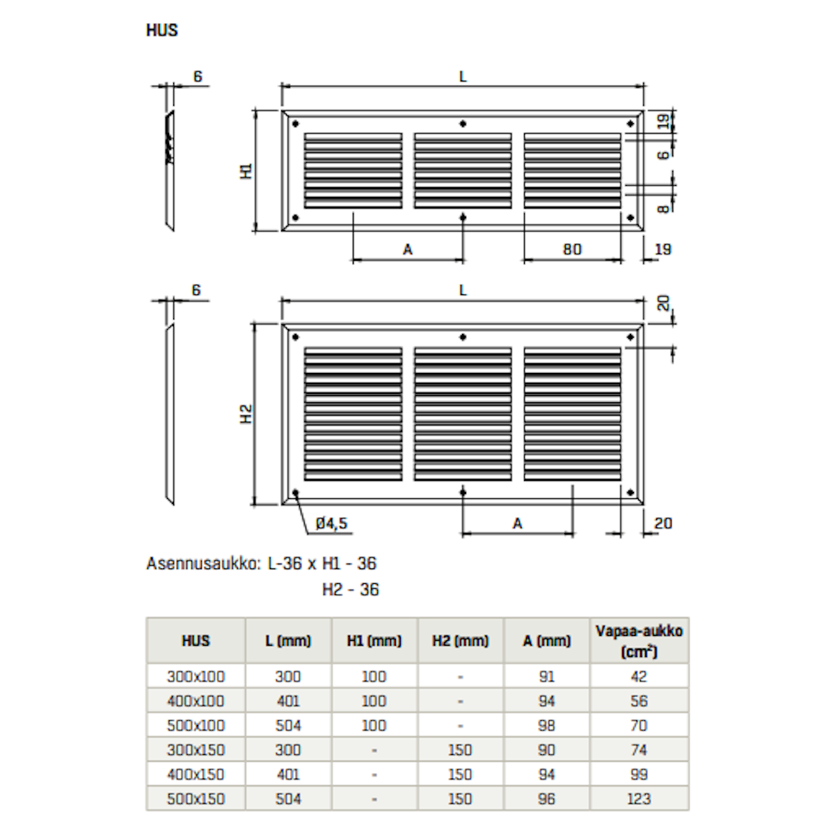HUS-säleikköjä käytetään ovien ja tuulikaappien siirtoilma-aukkojen peitesäleikköinä ja ne ovat helppo asentaa.