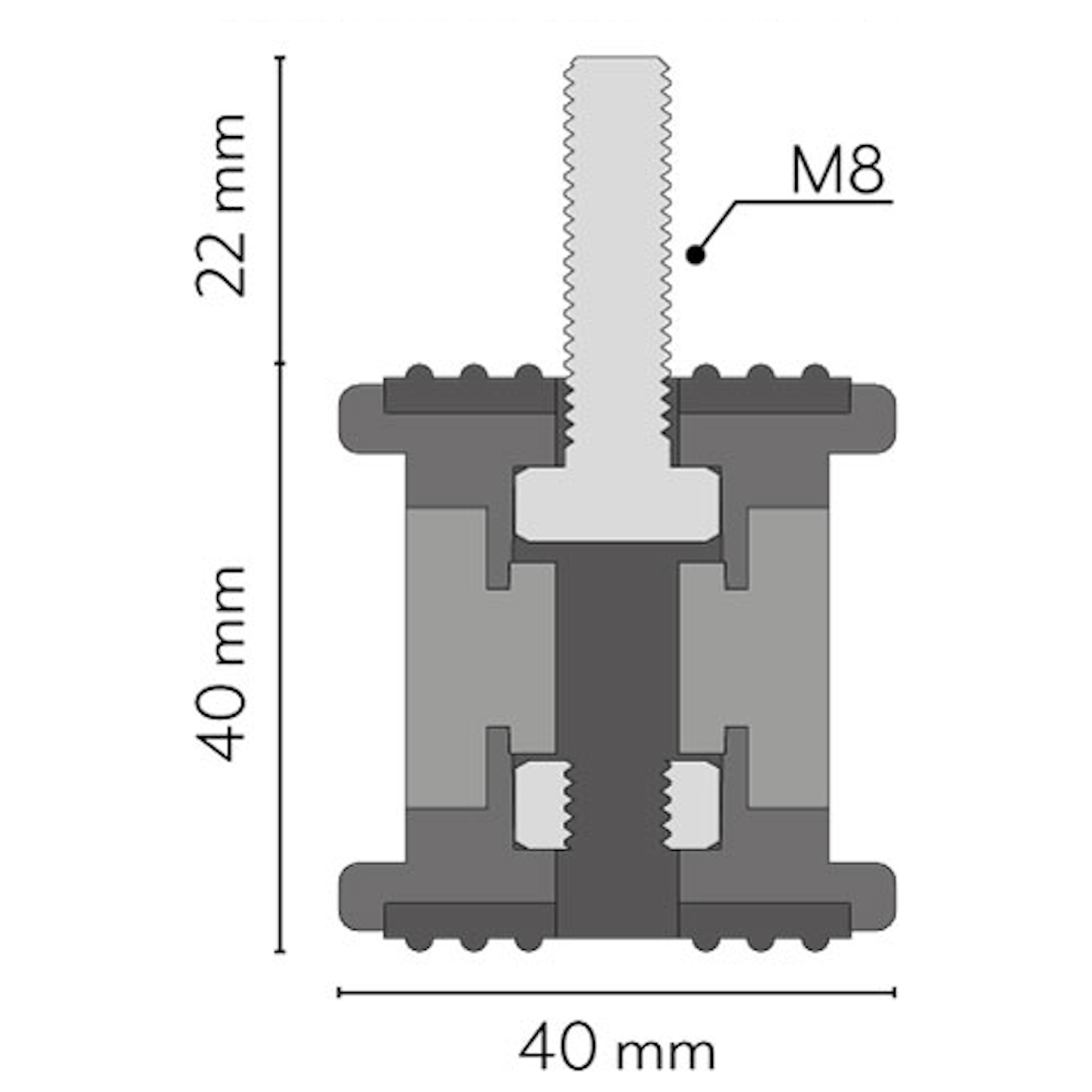 Värinänvaimenninsarja Vecamco Tacco 200kg. Kuminen värinänvaimenninsarja raskaammille jäähdyttimille ja koneikoille. Sarjan maksimikuorma 200kg. Shore A45. Mukana kiinnityspultit M8X16 kannakkeeseen kiinnitystä varten.