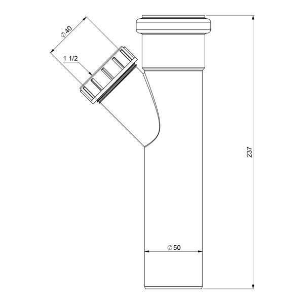 Puhdistusyhde tukkeutuneen viemärin avaamiseen. Asennetaan vesilukon poistoputken ja viemäriputken väliin, Ø 50 mm. Mahdollista juoksuttaa vettä samalla kun tukosta avataan.