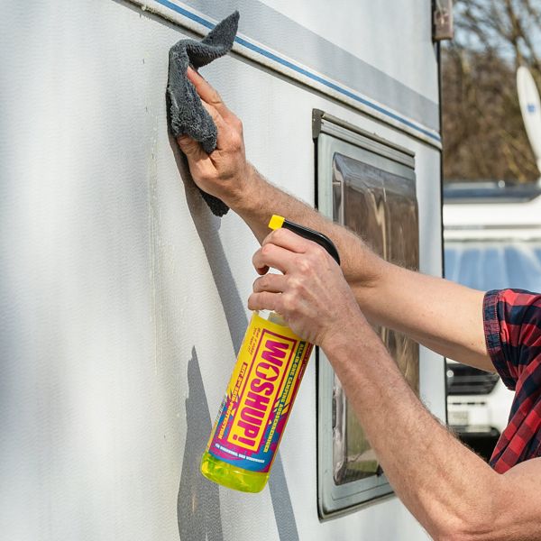 Jokaisessa WOSHUP!-tuotteessa on ainutlaatuinen XTRA SKIN -efekti. Erityisten proteiinien avulla matkailuautosi tuntuu kuin toiselta iholta. Tämä auttaa likaa ja nokea irtoamaan, mikä tekee seuraavasta pesusta helpomman ja taloudellisemman.