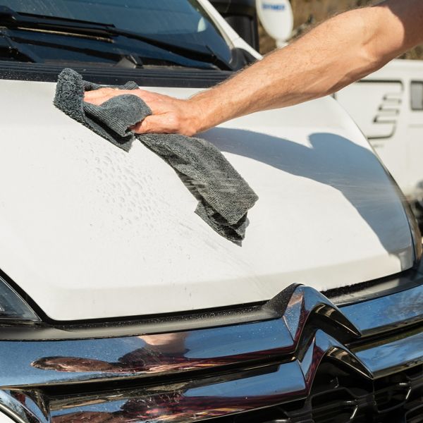 Tämä WOSHUP!:n korkealaatuinen puhdistusliina, jossa on paksu mikrokuitupinta, on kehitetty erityisesti herkille pinnoille, kuten muovi- ja polykarbonaattituulilaseille. Se imee luotettavasti likahiukkasia, estää naarmuuntumisen ja sopii erinomaisesti käytettäväksi WOSHUP!:n Wonder Wosherin tai Window Wosherin kanssa. Laserleikattujen reunojen ansiosta matkailuautosi pysyy raidattomana ja hyvin hoidettuna – ilman vaaraa maalipinnalle tai ikkunoille.