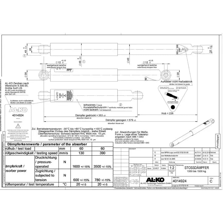 Akselin iskunvaimennin Solifer 2-akselin Iskunvaimennin 350-580 reikä 12mm BPW