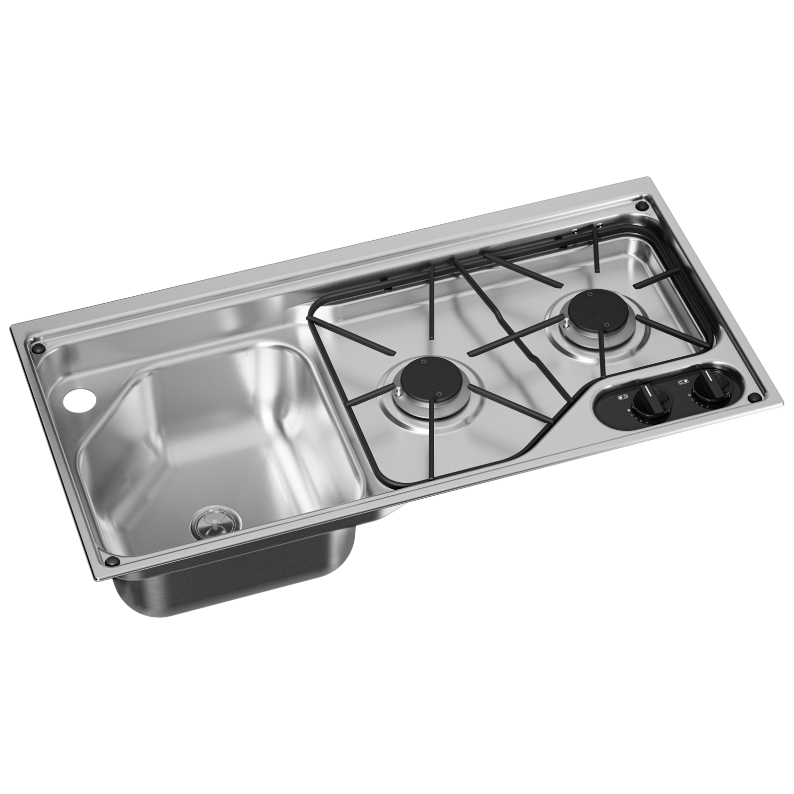 Dometic CVC1700 yhdistää kaksiliekkisen kaasulieden vasemmanpuoleiseen tiskialtaaseen ja sopii erinomaisesti retkeilyyn tai veneen keittiöihin. Ergonomiset säätimet mahdollistavat tarkan ruoanlaiton, ja muotoilu on tasainen työpinnan kanssa. Esiporattu reikä helpottaa erikseen saatavilla olevien hanojen liittämistä. Lisätyötilaa varten CVS1700G-mallissa on turvalasista valmistetut lasisuojukset.