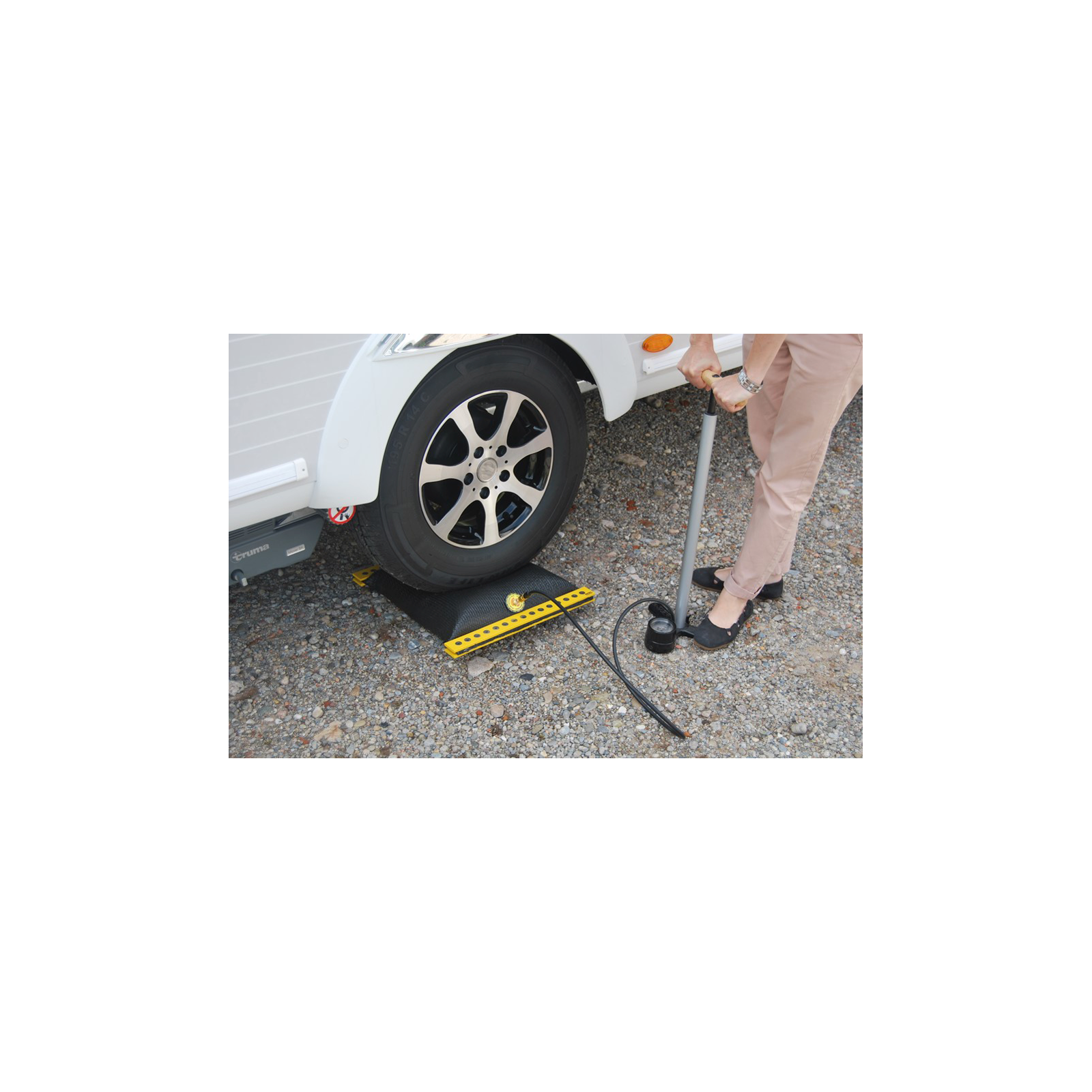 - Se on vaivaton ja mukava käyttää. Tyyny asetetaan yksinkertaisesti nostettavan pyörän alle. Käsi-/jalkapumpulla tai 12 V:n kompressorilla ajoneuvo voidaan tasata noin neljässä minuutissa ahtaimmissakin tiloissa.