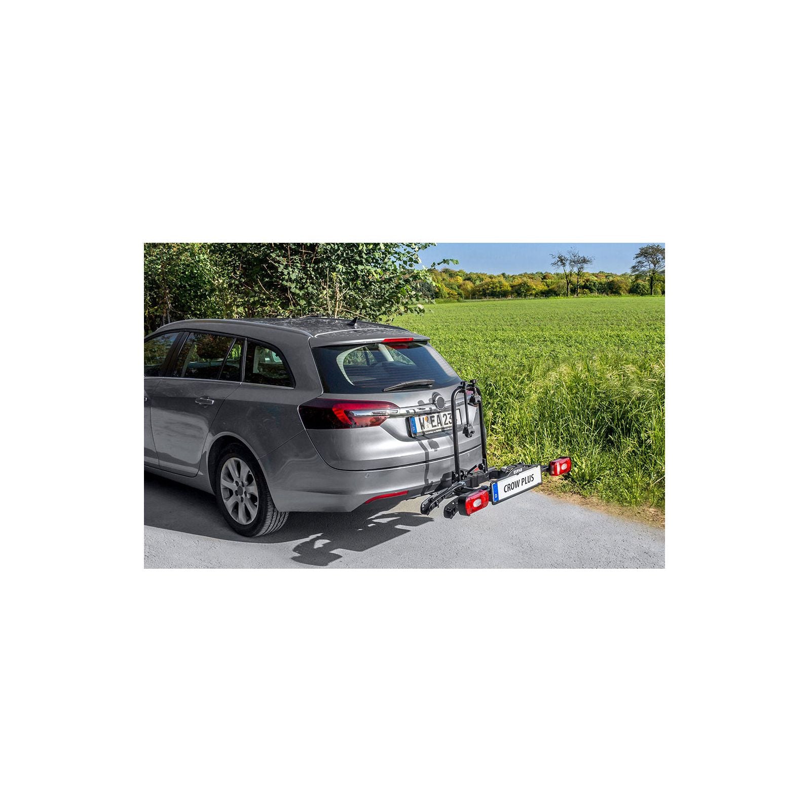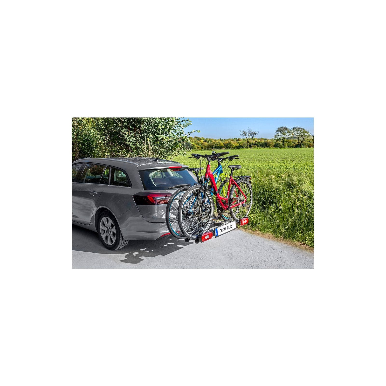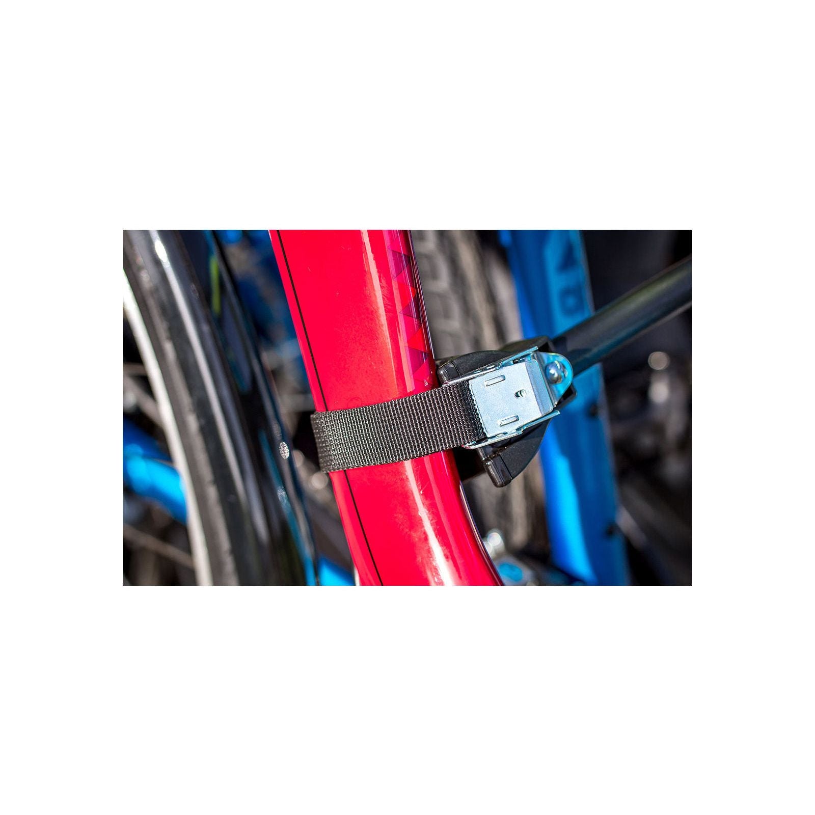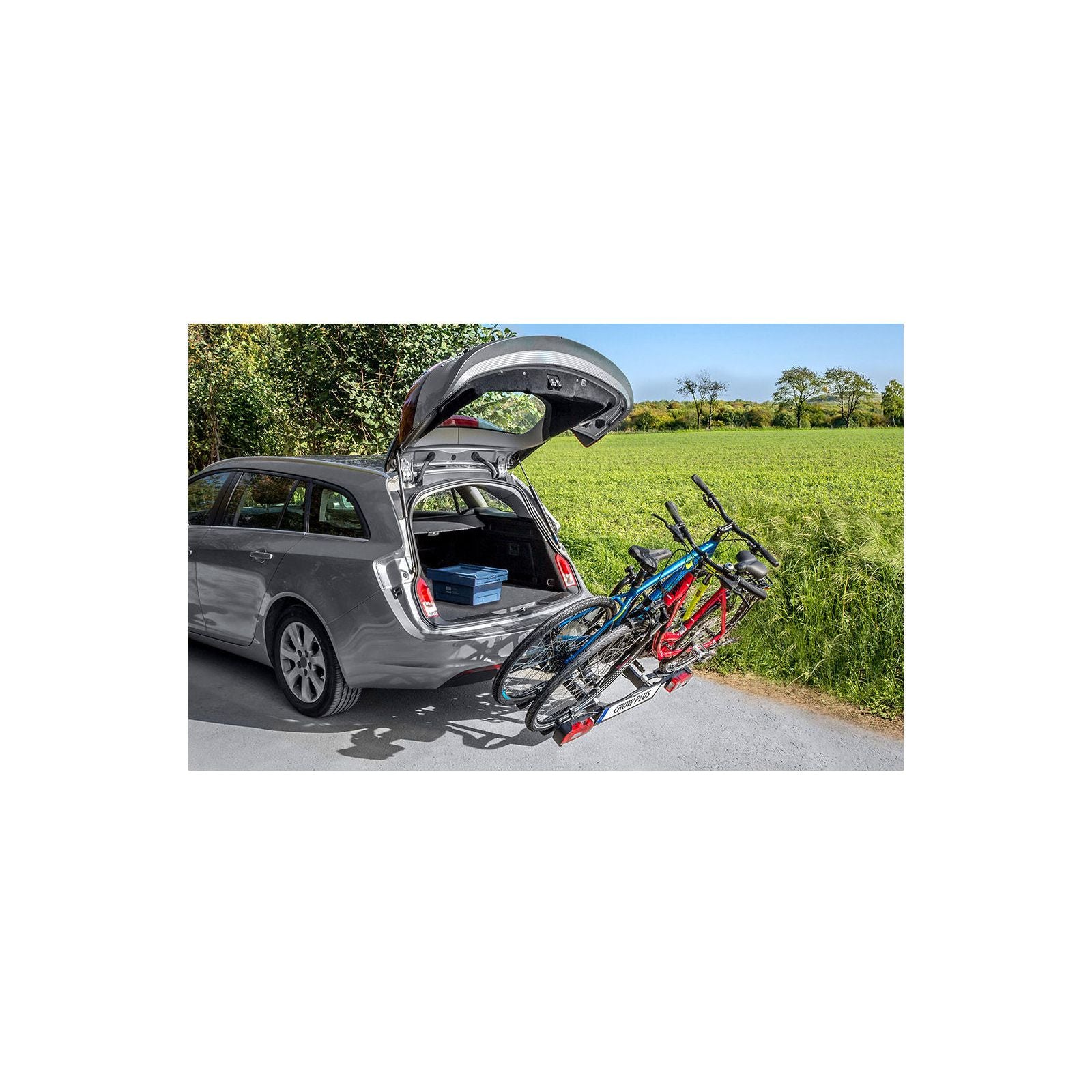 Osittain esikoottu pyöräteline kahden polkupyörän kuljettamiseen peräkärryn vetokoukussa. Sopii myös ylisuurille ja Y-runkoisille pyörille sekä sähköpyörille. Helppo asennus pikakiinnitysjärjestelmällä. Polkupyörät kiinnitetään runkokiinnikkeillä ja tekstiilikiinnityshihnoilla. Voidaan laajentaa kolmannella pyörällä. Lukittava. Tukevat teräskiskot ja muovinen pyöränpidike.