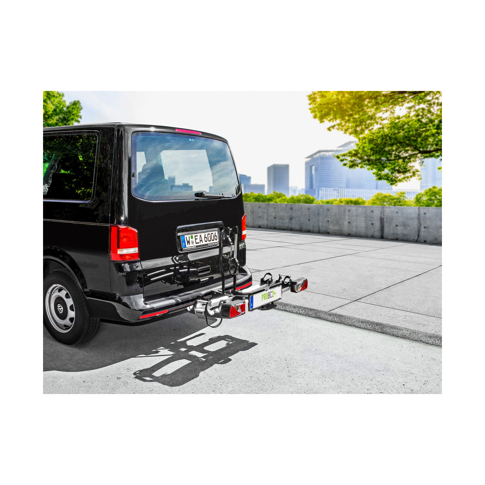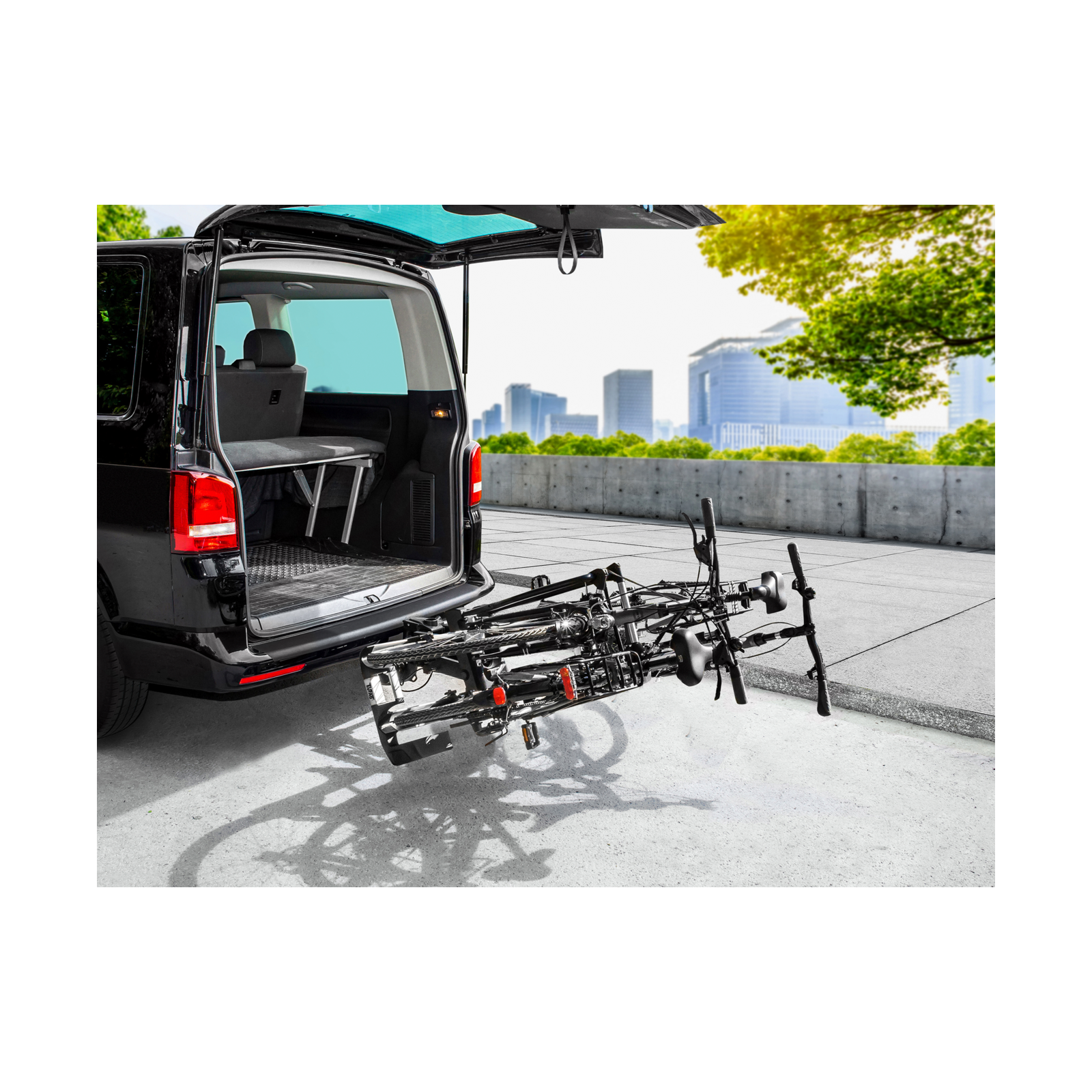 - Sopii ajoneuvoille, joissa on erittäin suuret tavaratilan luukut, esim. VW T5:lle, T6:lle ja pakettiautoille, koska telineellä on suurempi etäisyys ajoneuvoon
