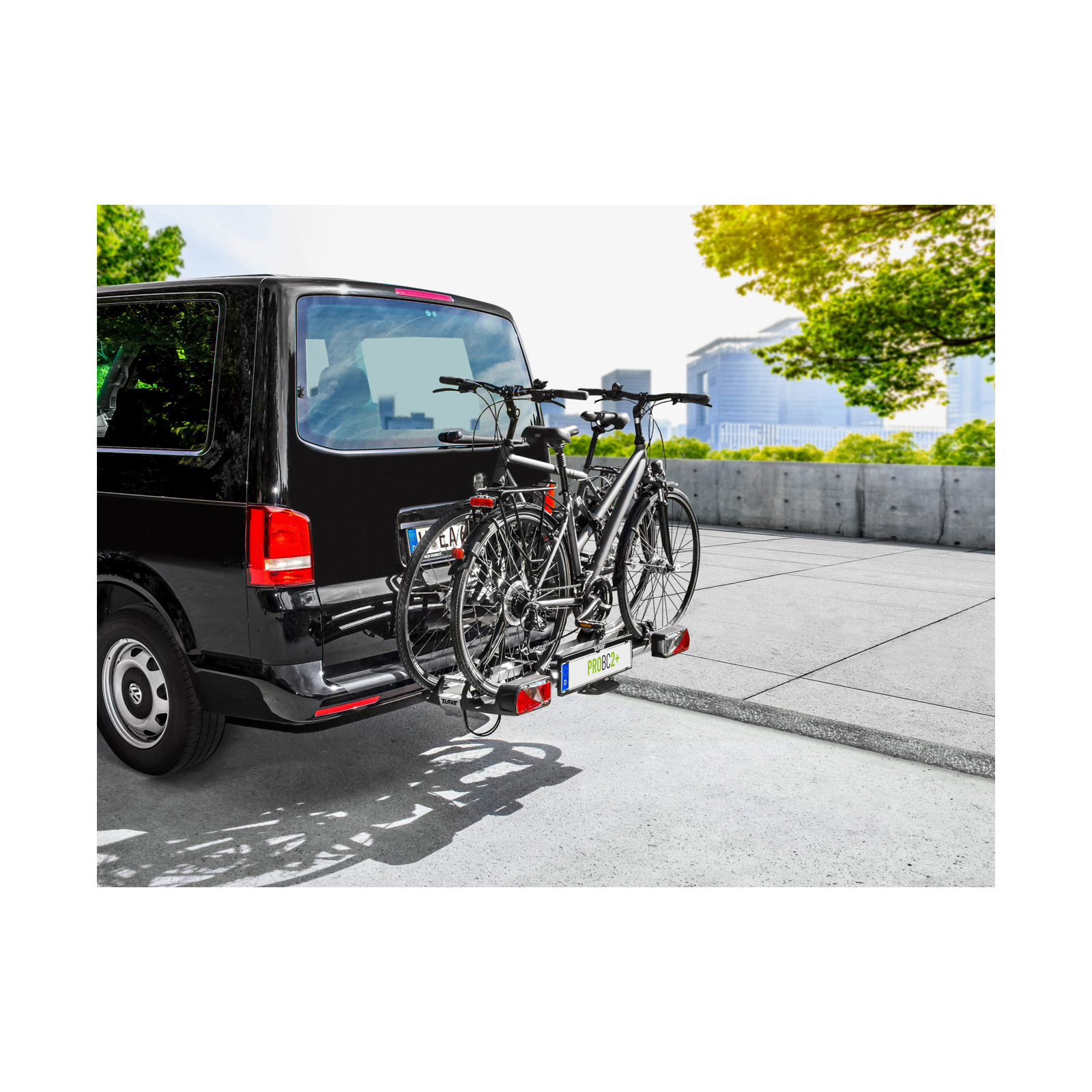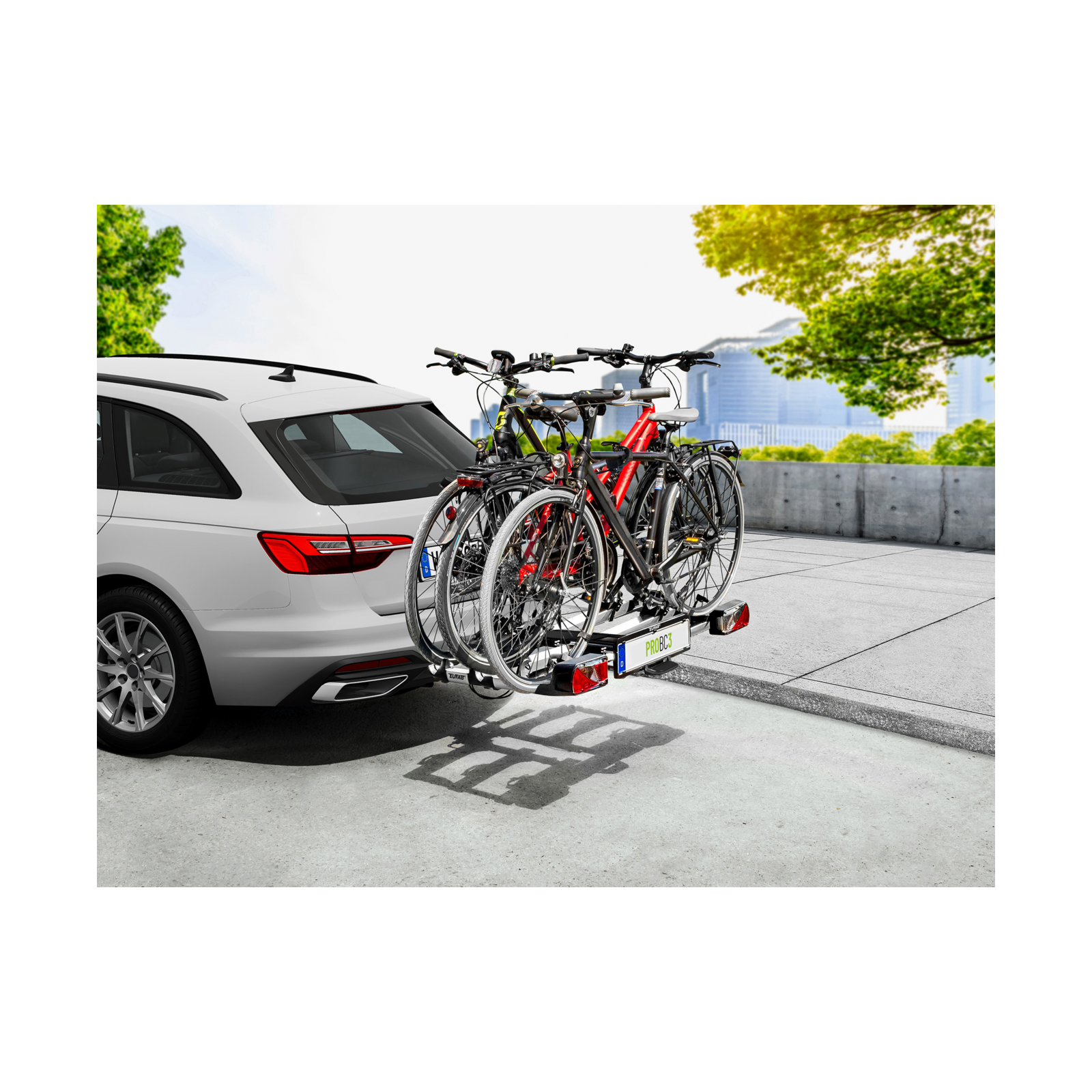 Irrotettavat ja lukittavat hihnakiinnikkeet räikkämekanismilla varmistavat pyörien turvallisen kiinnityksen, ja telinettä voidaan tarvittaessa pidentää jopa kolmeen pyörään.