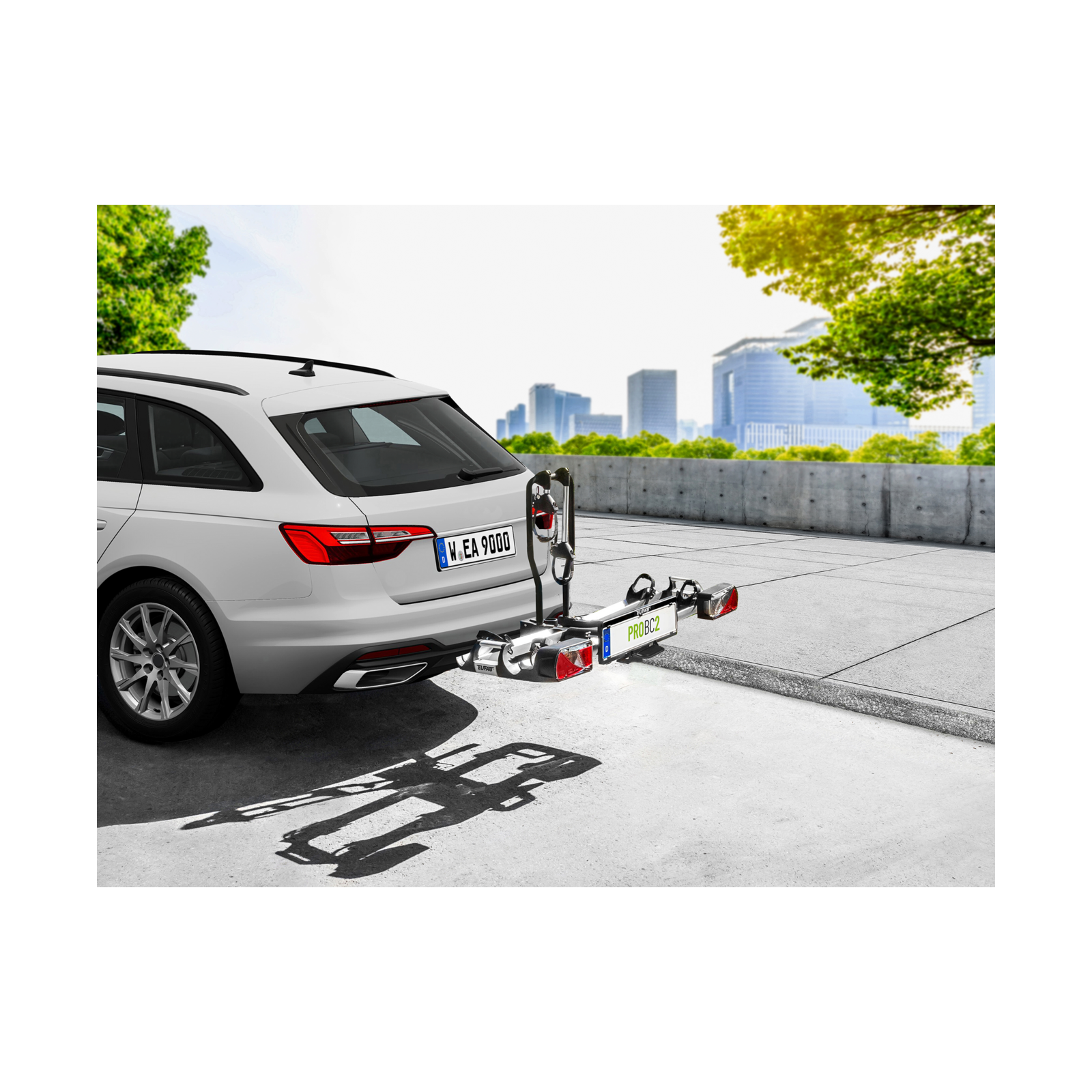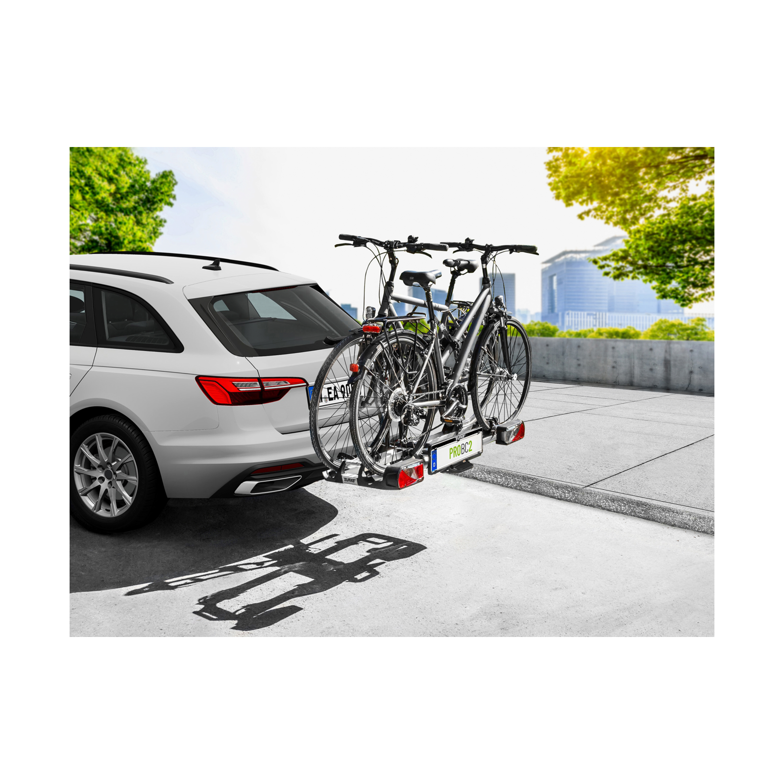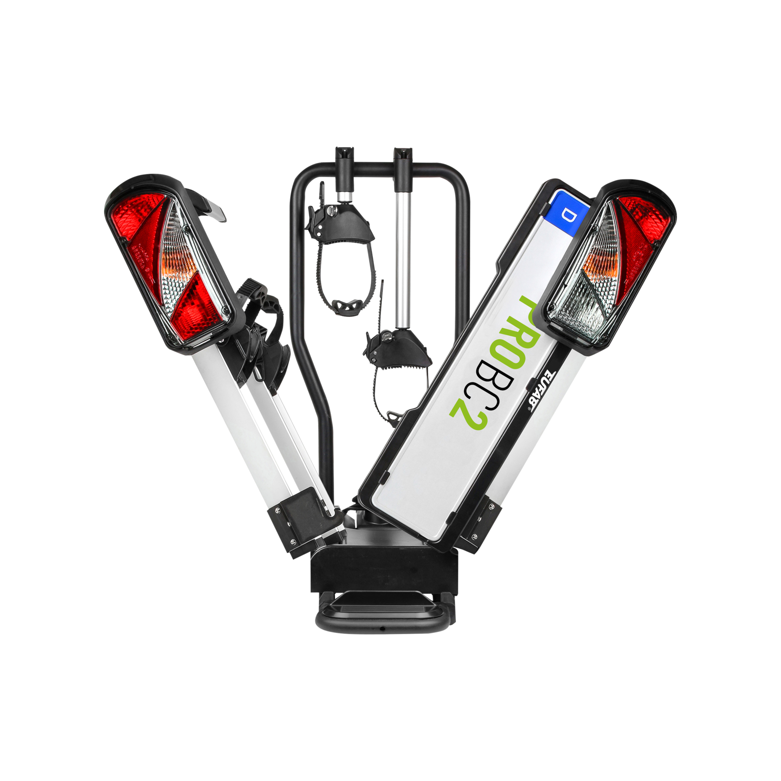 Eufab ProBC2 -polkupyöräteline mahdollistaa kahden polkupyörän kuljettamisen vetokoukussa. Se sopii myös ylisuurille ja Y-runkoisille polkupyörille sekä sähköpyörille. Se on helppo koota pikalukitusjärjestelmän ansiosta. Pyörät pysyvät tukevasti paikoillaan irrotettavien ja lukittavien hihnarunkopiteiden avulla, joissa on räikkä. Tarvittaessa telinettä voidaan helposti pidentää niin, että siihen mahtuu kolme polkupyörää.