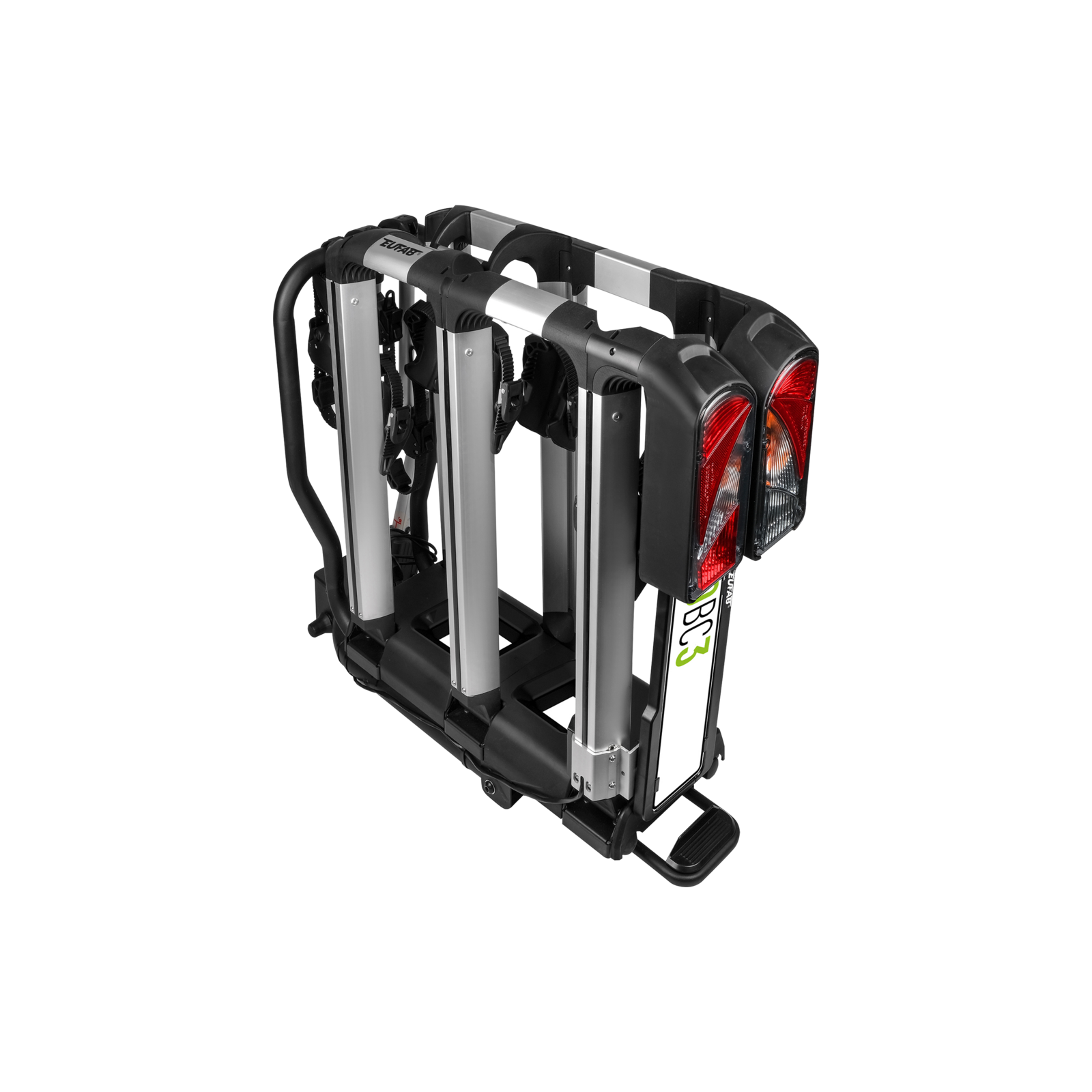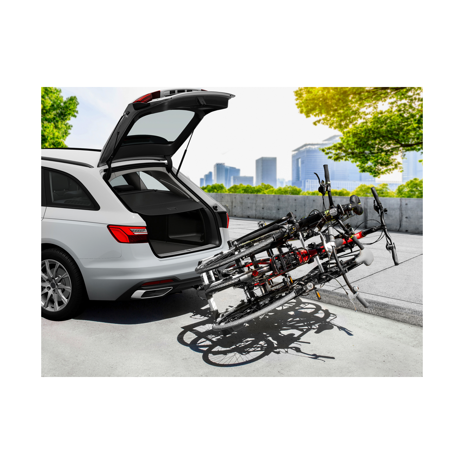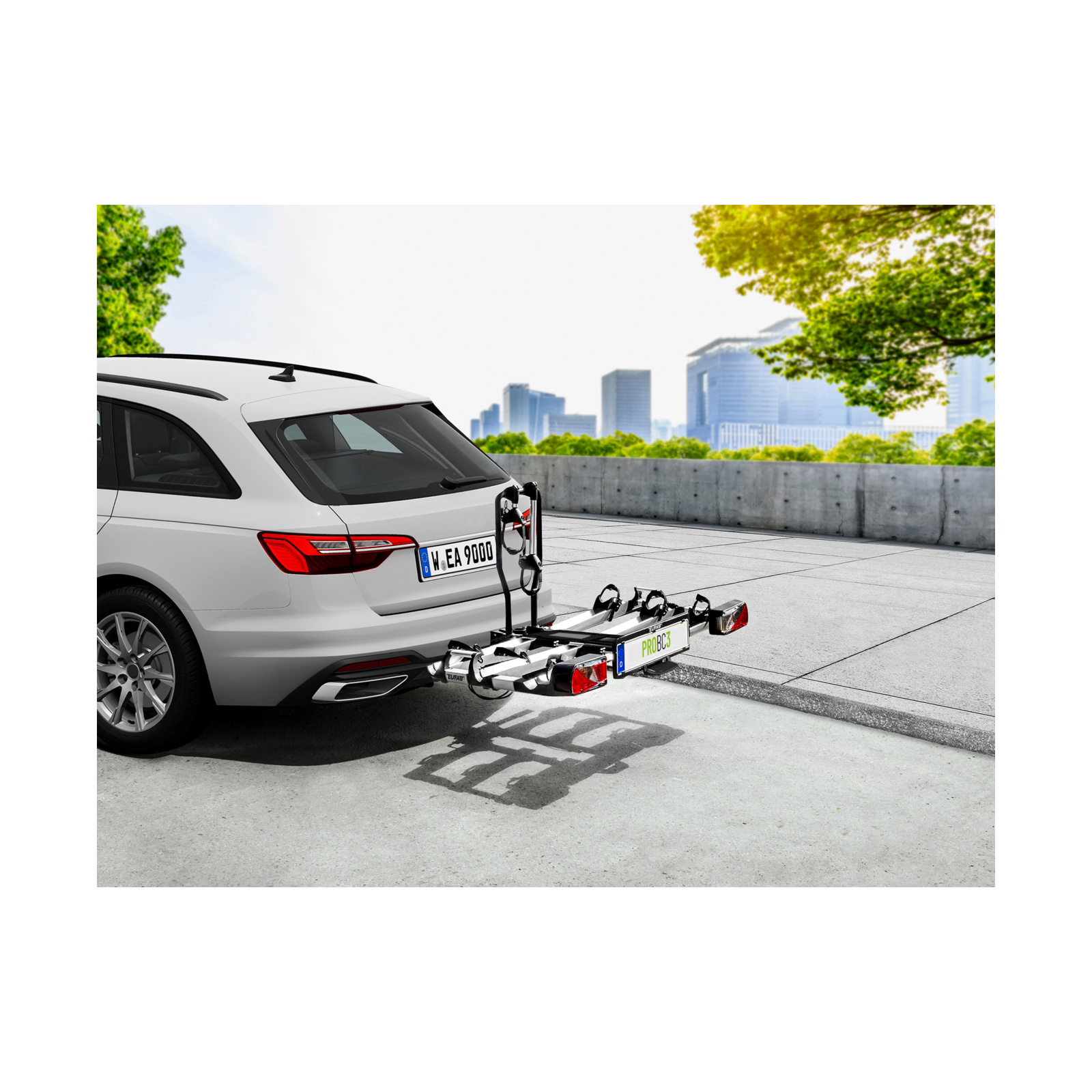 Vetokoukkuun kiinnitettävällä pyörätelineellä voit kuljettaa helposti jopa neljä polkupyörää. Sopii myös ylisuurille ja Y-runkoisille polkupyörille. Helppo asennus pikalukitusjärjestelmän ansiosta. Pyörät kiinnitetään irrotettavilla ja lukittavilla rungonpidikkeillä, joissa on räikkä.