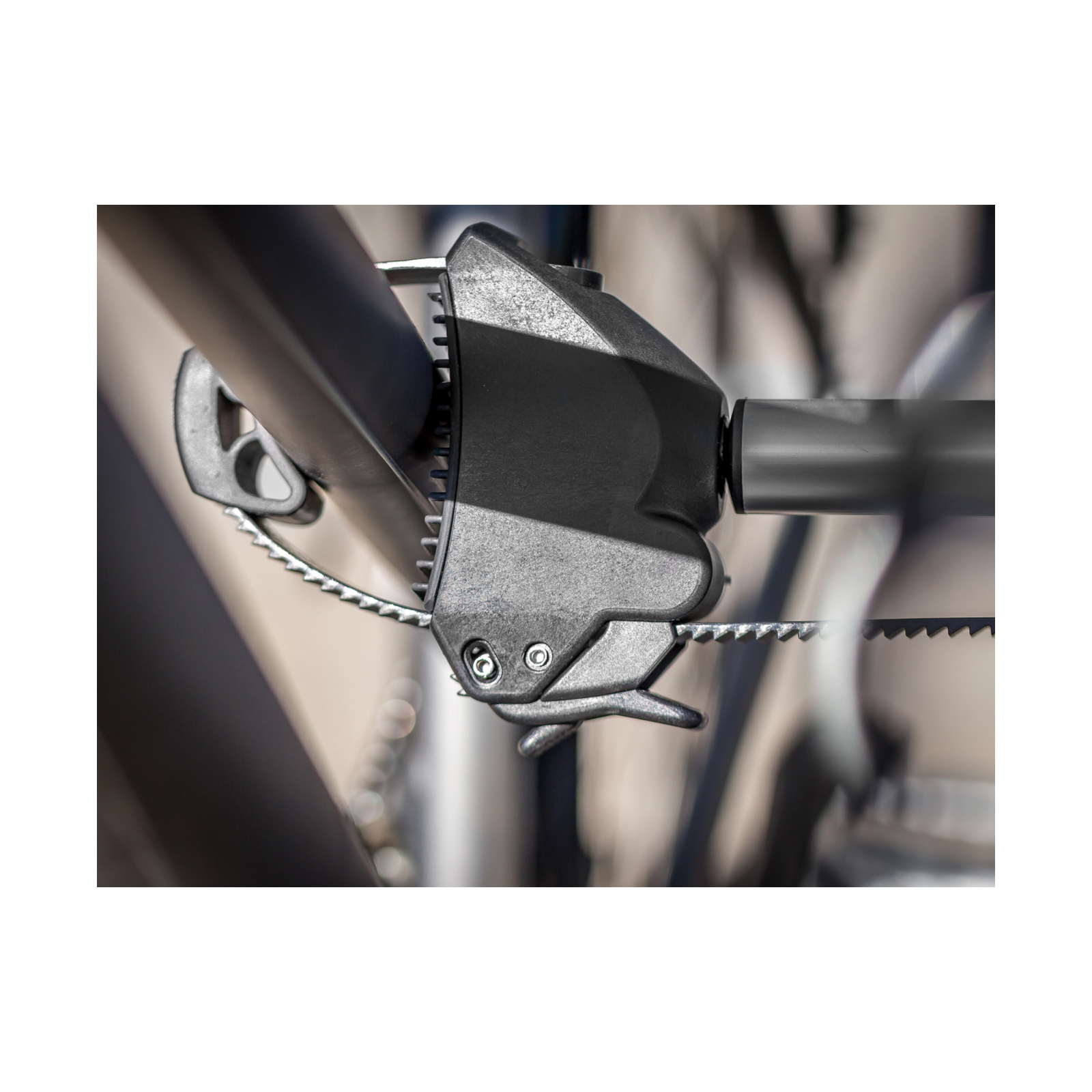 • Polkupyörien kiinnitys irrotettavilla ja lukittavilla rungonpidikkeillä, joissa on räikkä, erityisesti herkille, ylikierteisille ja Y-runkoisille rungoille