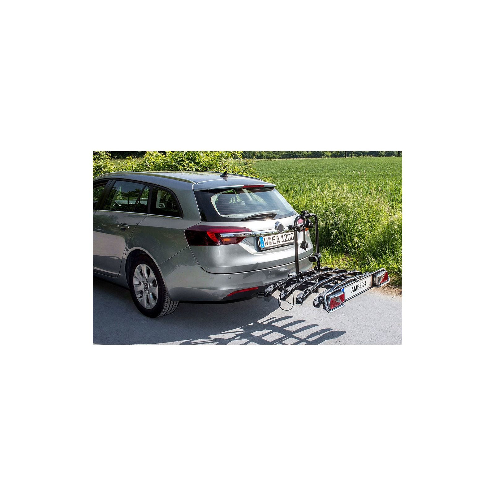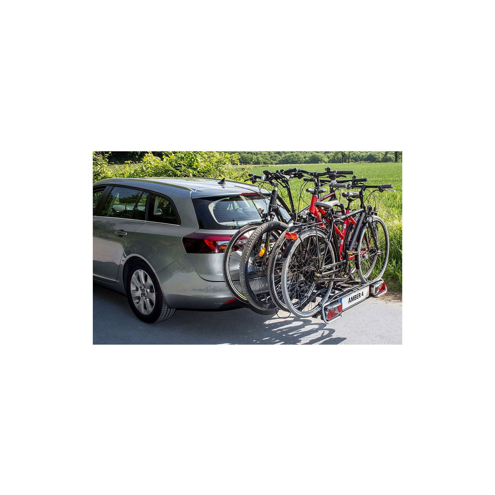"Amber 4" -pyörätelineellä voit kuljettaa jopa neljä polkupyörää vetokoukussa. Voit kuljettaa myös ylisuuria ja Y-runkoisia polkupyöriä, joiden halkaisija on enintään 8,5 cm. Lisäturvaa tarjoavan taittomekanismin ansiosta tavaratilan voi yleensä avata myös polkupyörät kiinnitettynä. Vetokoukku sopii lähes kaikkiin vetokoukkutyyppeihin ja kuluttaa vähemmän polttoainetta kuin katolle asennettava kuljetus.
