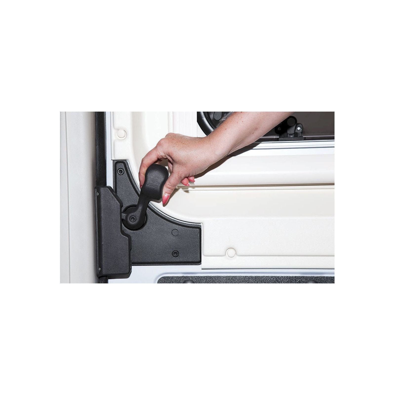 Lisälukko FIAT Ducato X250- ja X290-pakettiautojen (vuoden 2006 jälkeen) liukuovien sisäpuolelle. Sopii alkuperäisen lukon lisäksi ja tarjoaa lisäkiinnityspisteen ja lisää turvallisuutta. Erittäin helppokäyttöinen: nosta tai laske vain vipua.