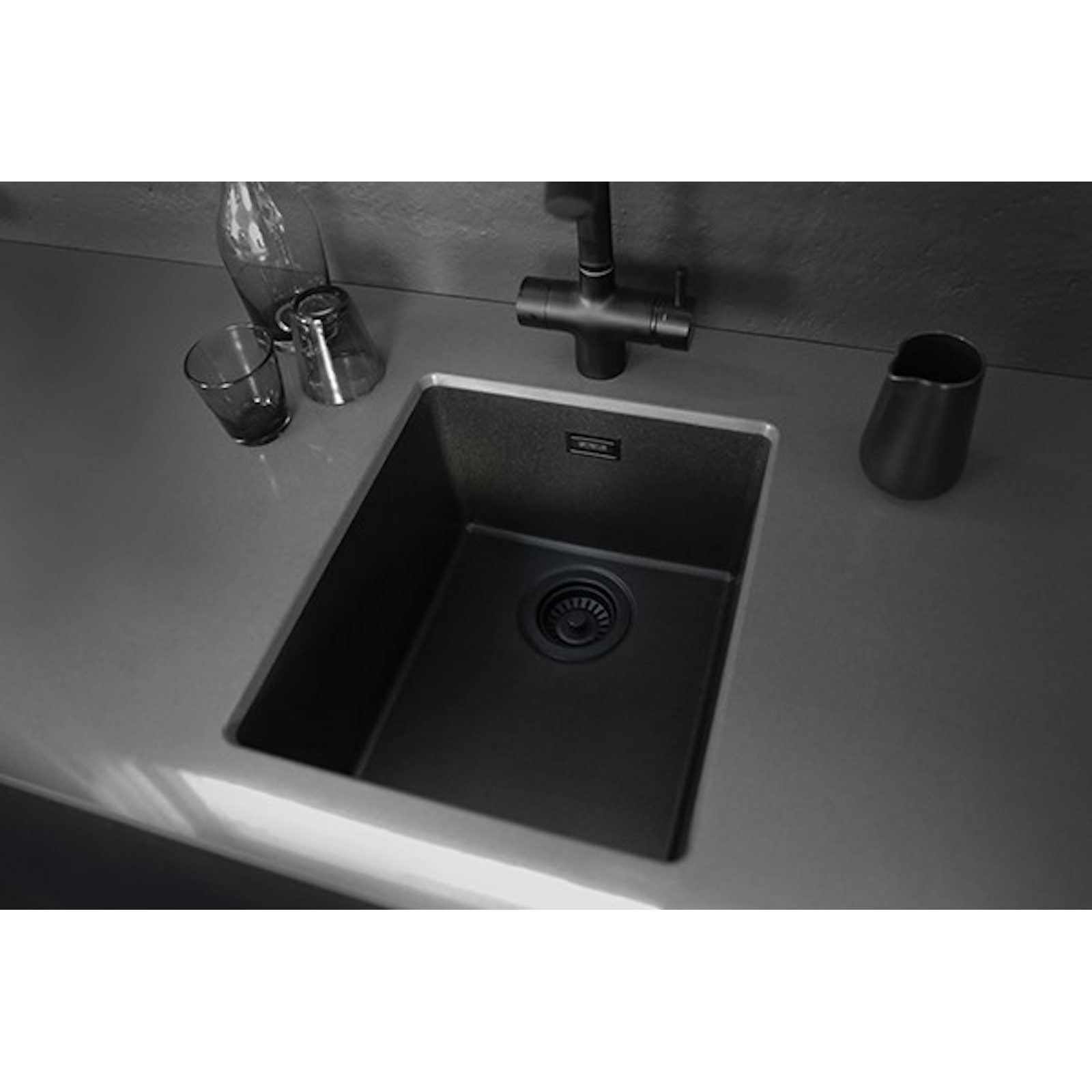 Stala Essent CEG-E34B on pienikokoinen täysin musta kvartsikomposiittiallas. Mustaa komposiittiallasta täydentävät mustat yksityiskohdat: musta ylivuoto, koripohjaventtiili ja sihtikuppi. Altaassa on kapeat reunat, jotka viimeistelevät tyylikkään kokonaisuuden. Täysin mustat altaat sopivat erinomaisesti moderniin keittiösisustukseen.