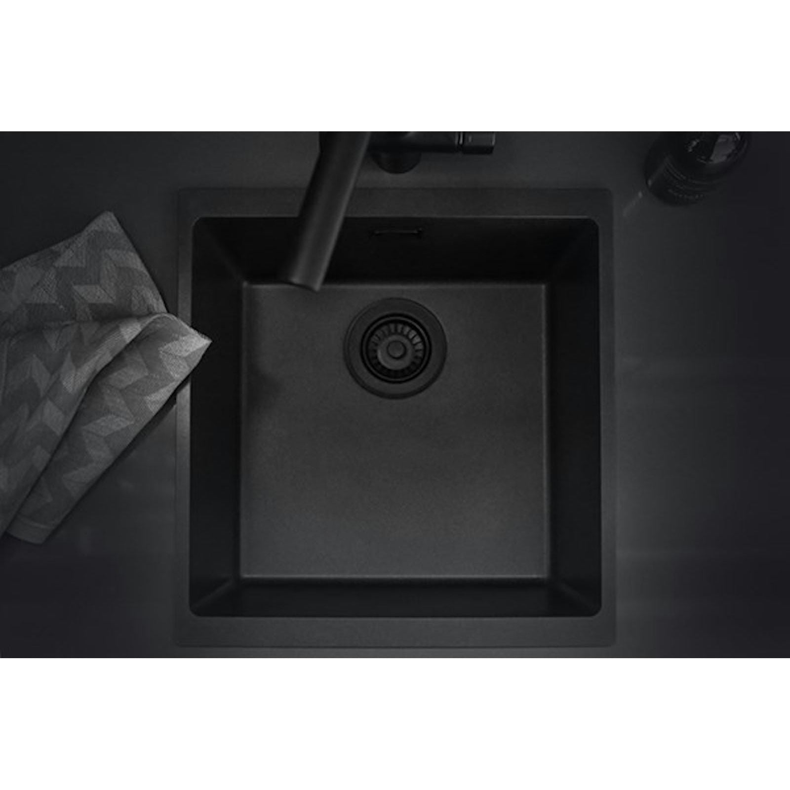 Stala Essent CEG-E40B on täysin musta kvartsikomposiittiallas. Mustaa komposiittiallasta täydentävät mustat yksityiskohdat: musta ylivuoto, koripohjaventtiili ja sihtikuppi. Altaassa on kapeat reunat, jotka viimeistelevät tyylikkään kokonaisuuden. Täysin mustat altaat sopivat erinomaisesti moderniin keittiösisustukseen.